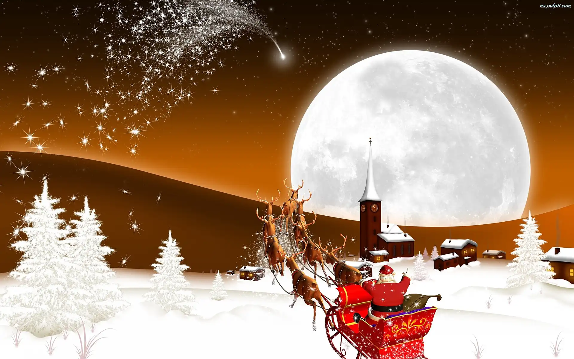Boże Narodzenie, Sanie, Mikołaj, Zaprzęg