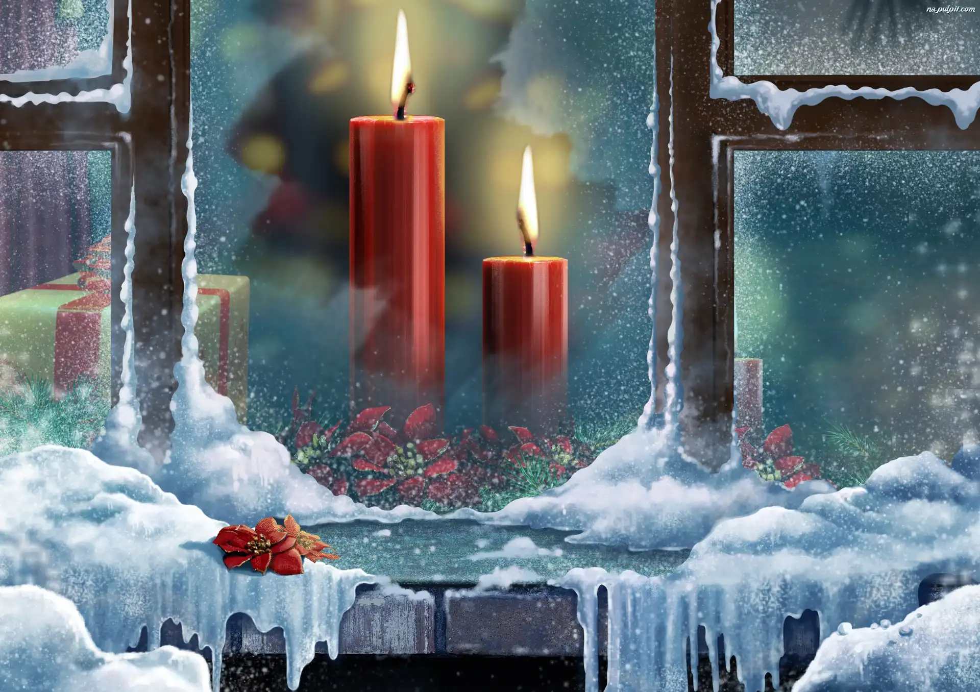Boże Narodzenie, Świece, Okno, Śnieg Na Pulpit