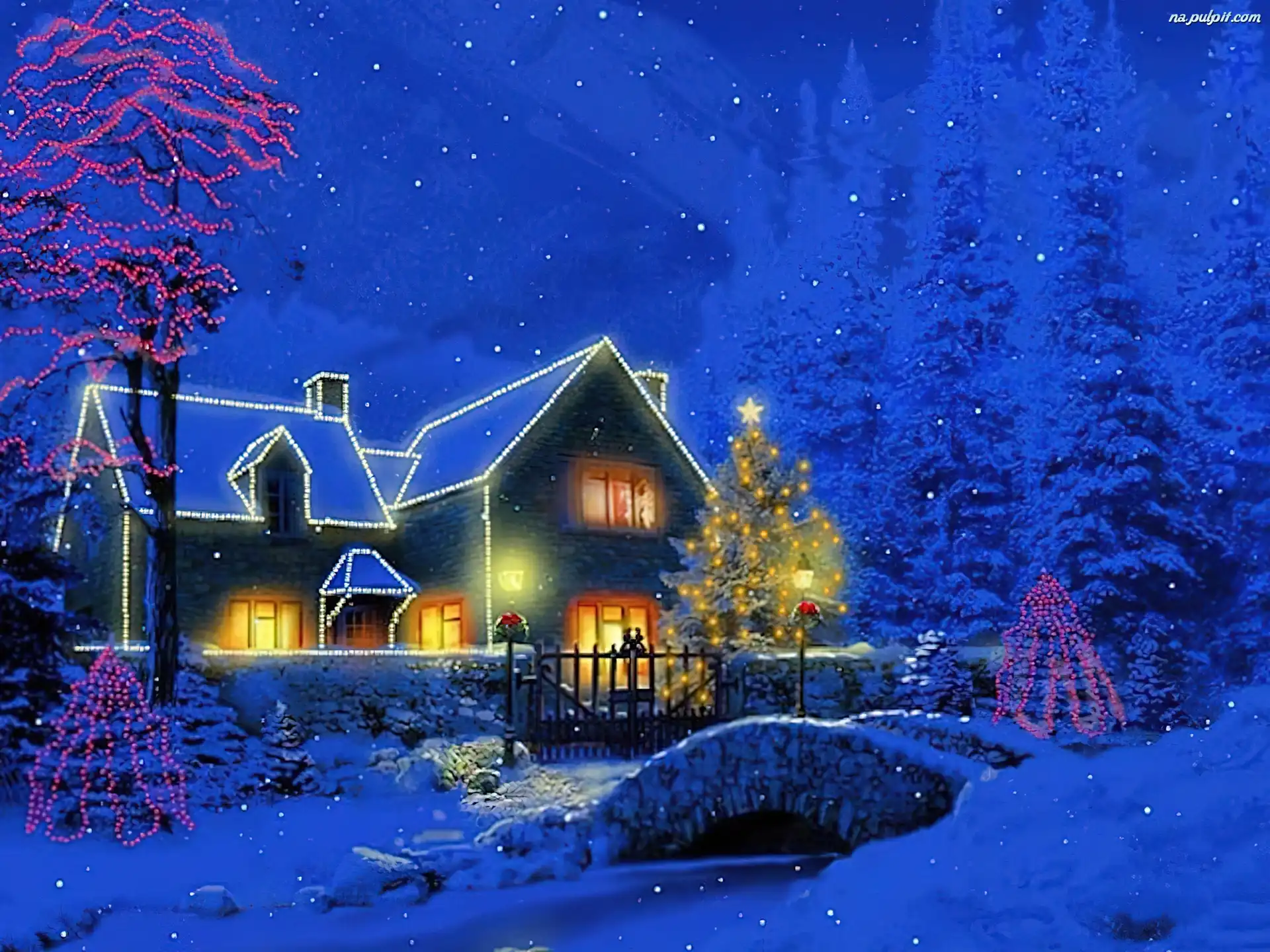 Boże Narodzenie, Dom, Oświetlony, Zima Na Pulpit