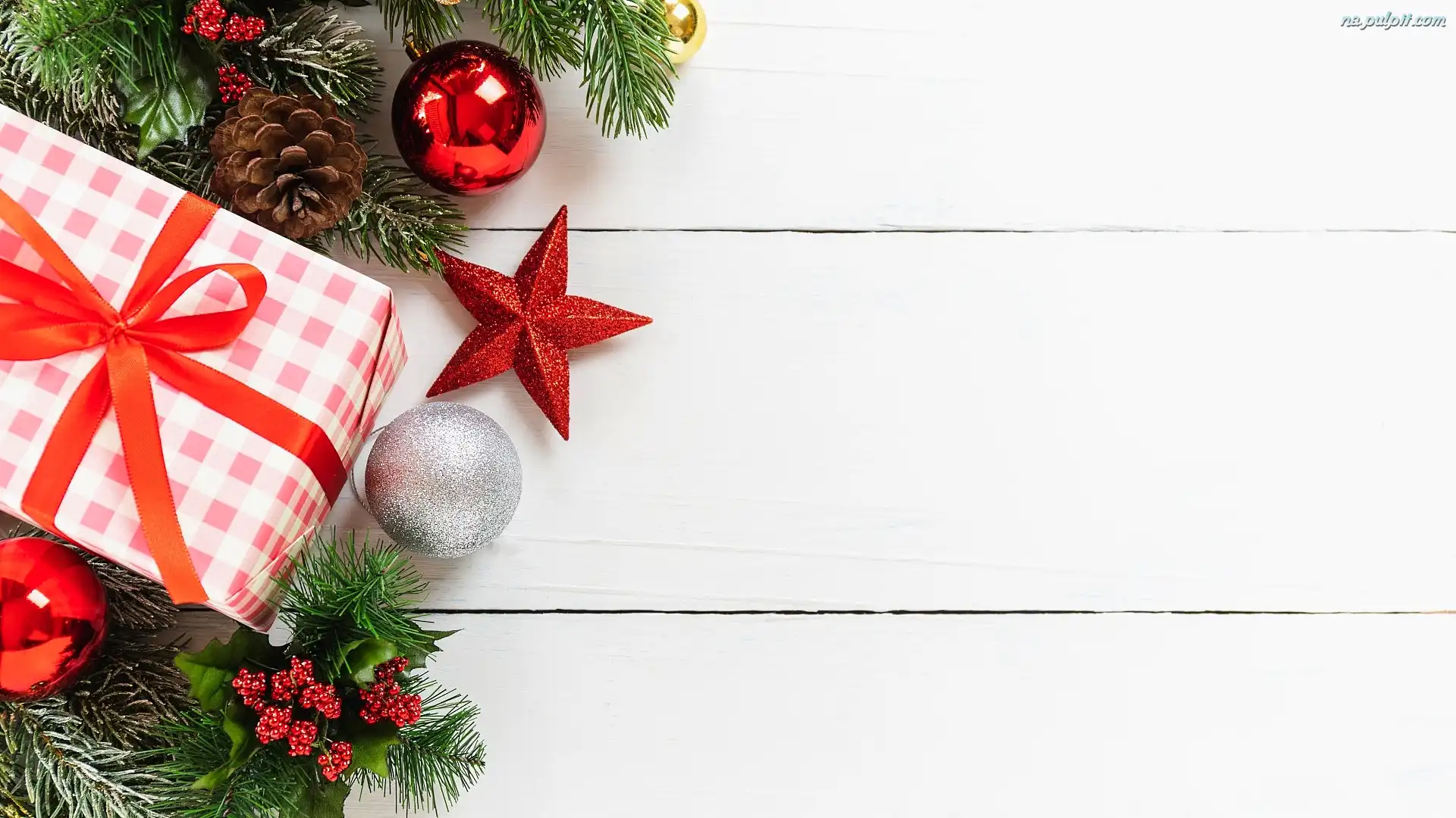 Boże Narodzenie, Bombki, Gałązki, Prezent, Szyszka