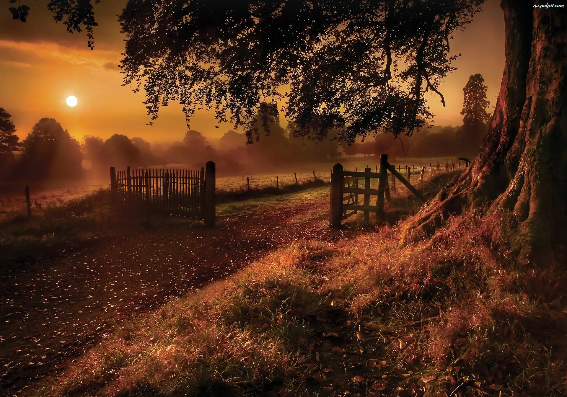 Brama, Wiejska, Słońca, Zachód, Droga Na Pulpit