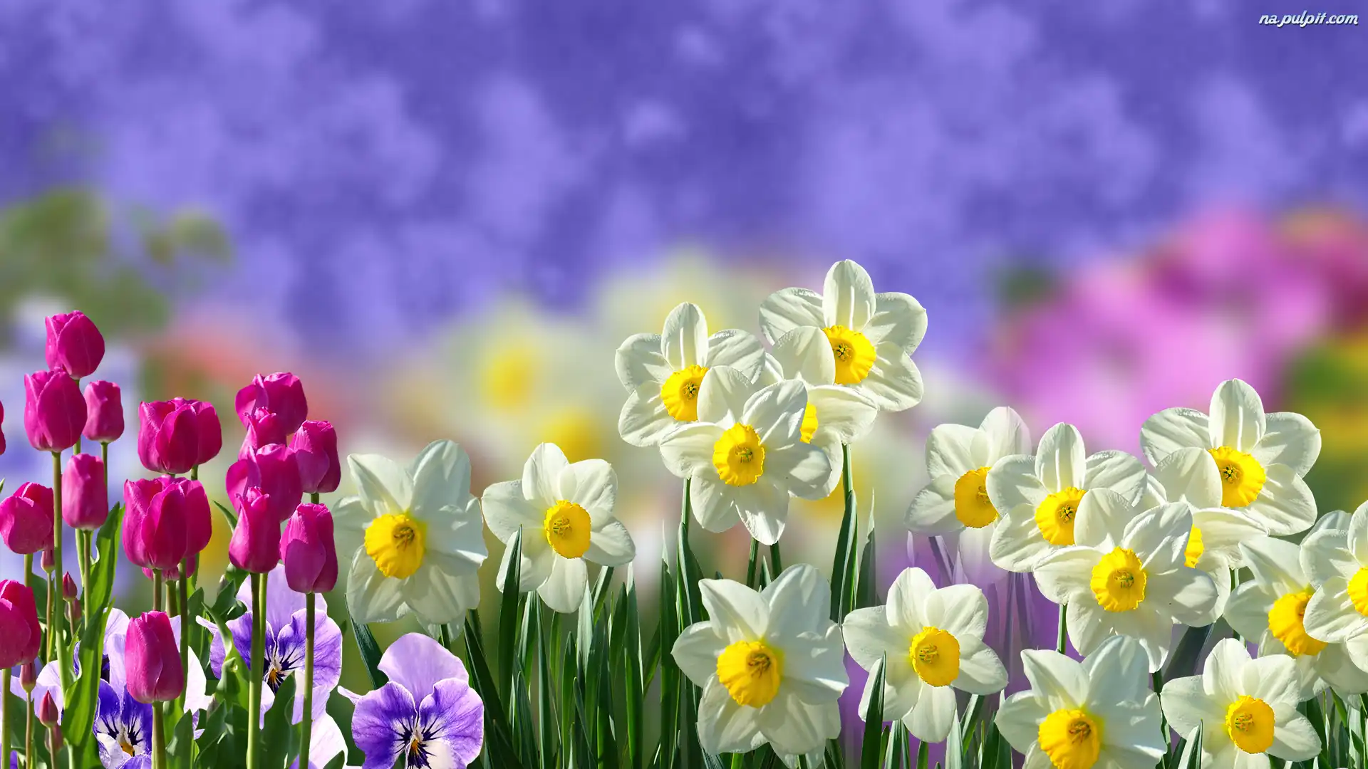 Bratki, Narcyzy, Kwiaty, Tulipany Na Pulpit