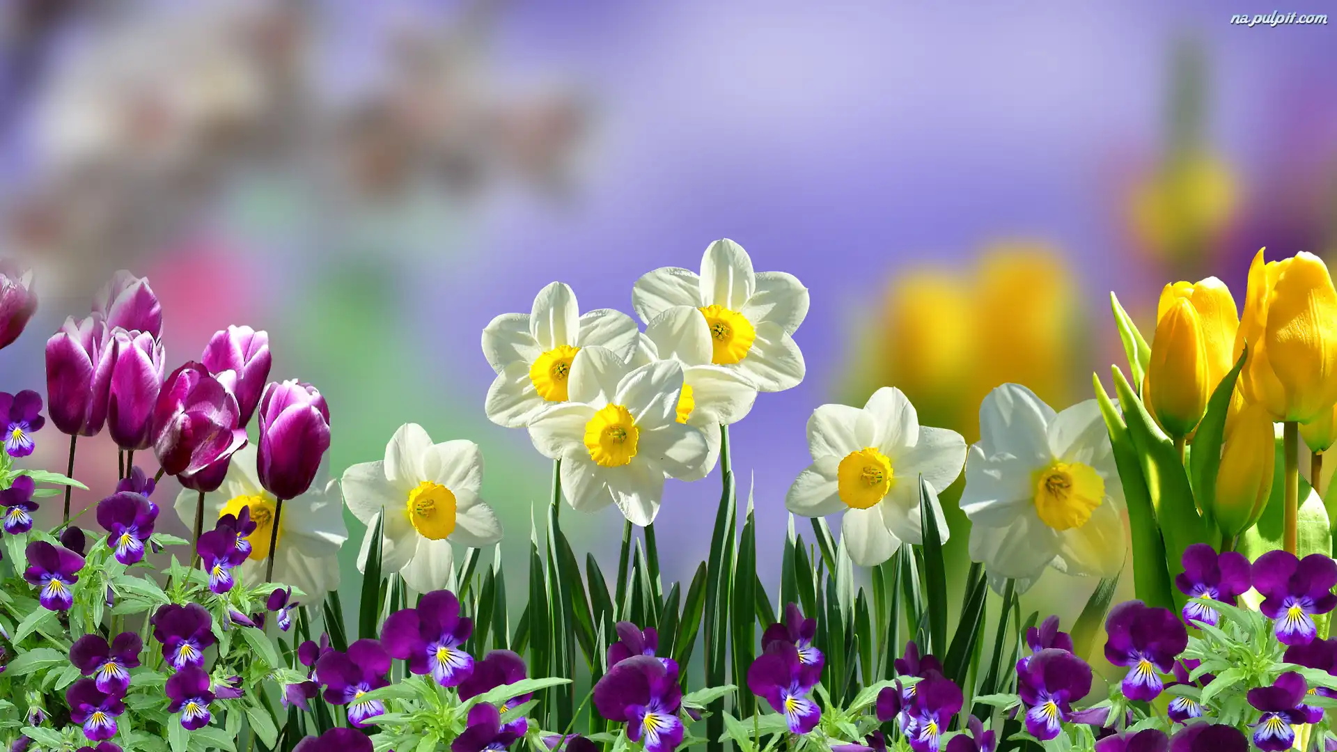 Bratki y, Narcyzy, Kwiaty, Tulipany Na Pulpit