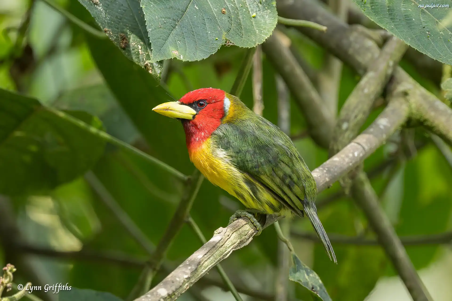 Ptak, Brodacz czerwonogłowy, Gałęzie, Liście Na Pulpit