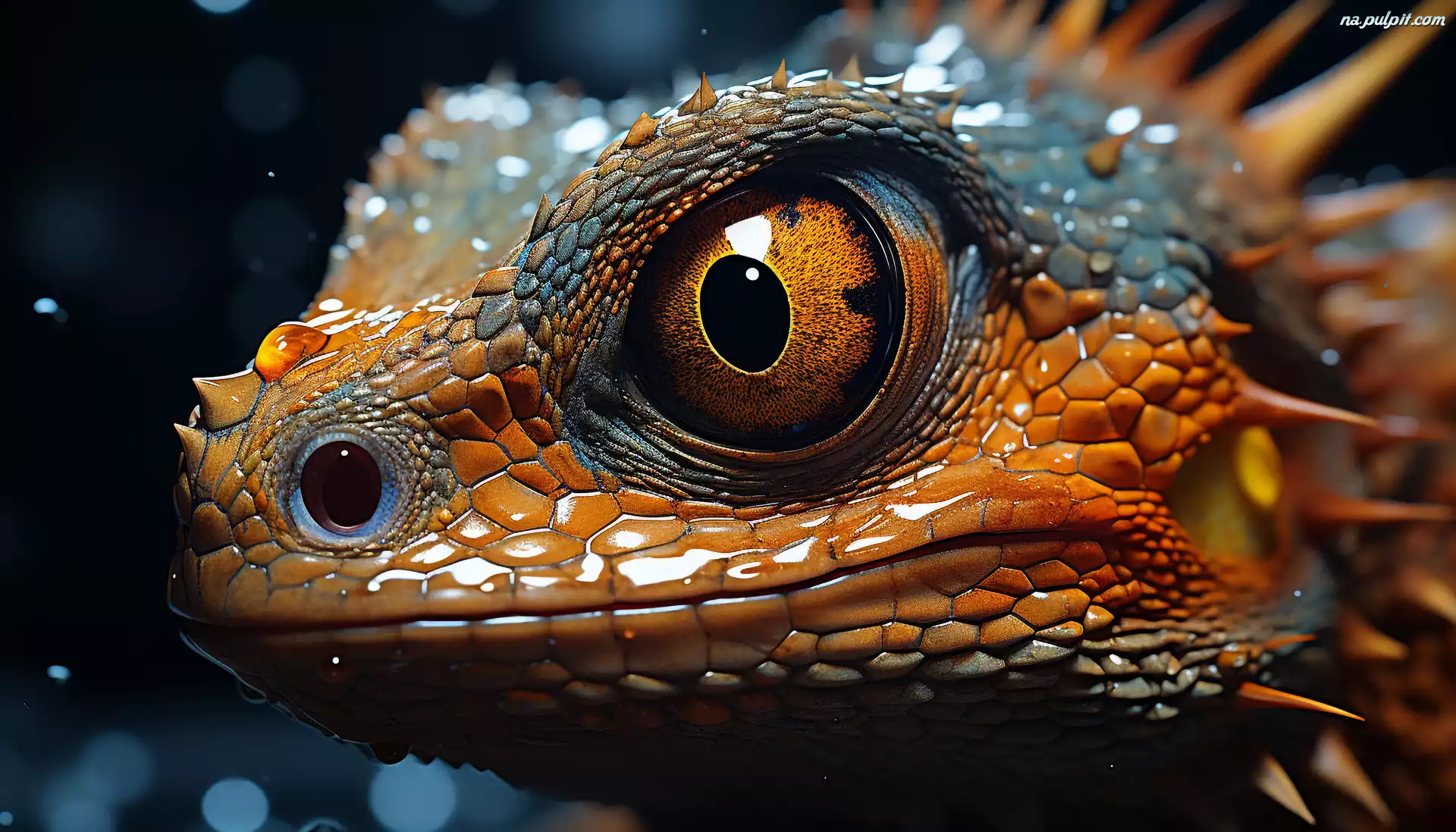 Oko, Jaszczurka, Agama brodata, Zbliżenie, Głowa Na Pulpit