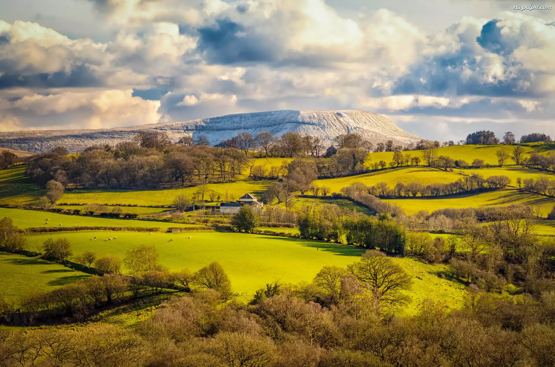 Chmury, Brytania, Domy, Wzgórza, Pola, Wielka, Drzewa Na Pulpit
