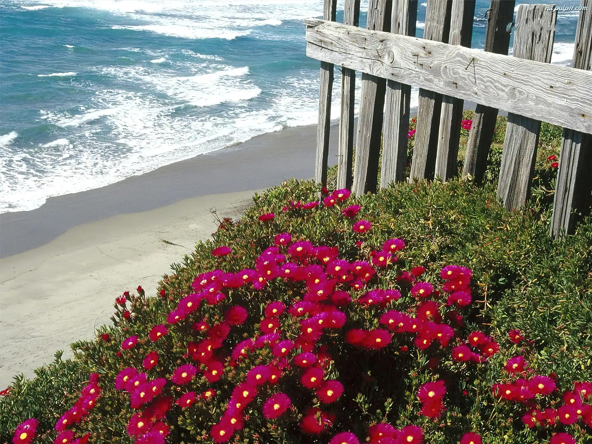 Brzeg, Płot, Kwiaty, Woda Na Pulpit