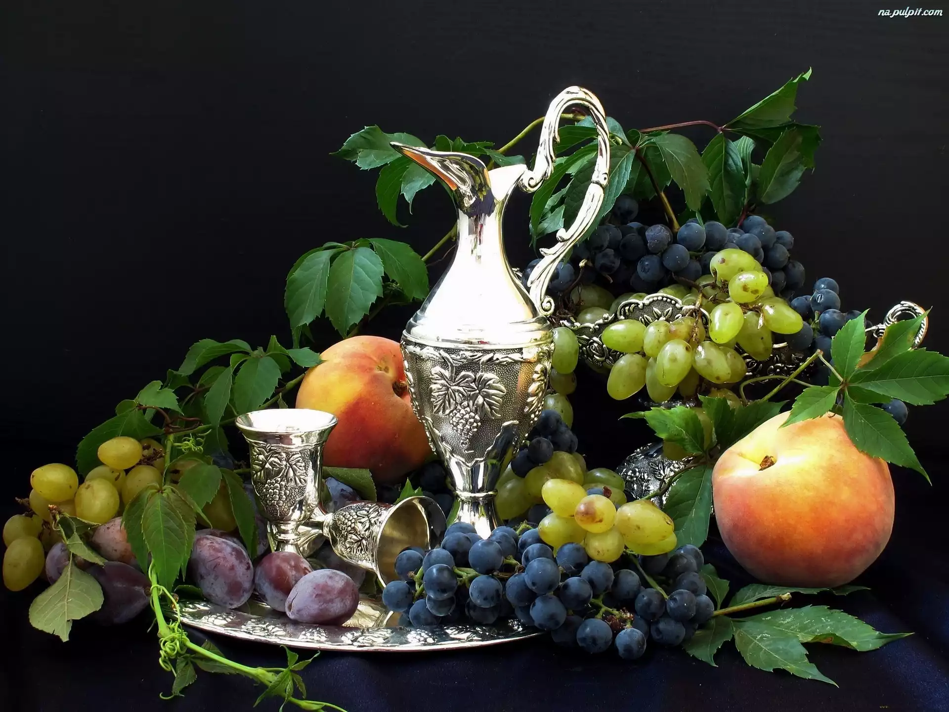 Brzoskwinie, Zastawa, Srebrna, Winogrona Na Pulpit