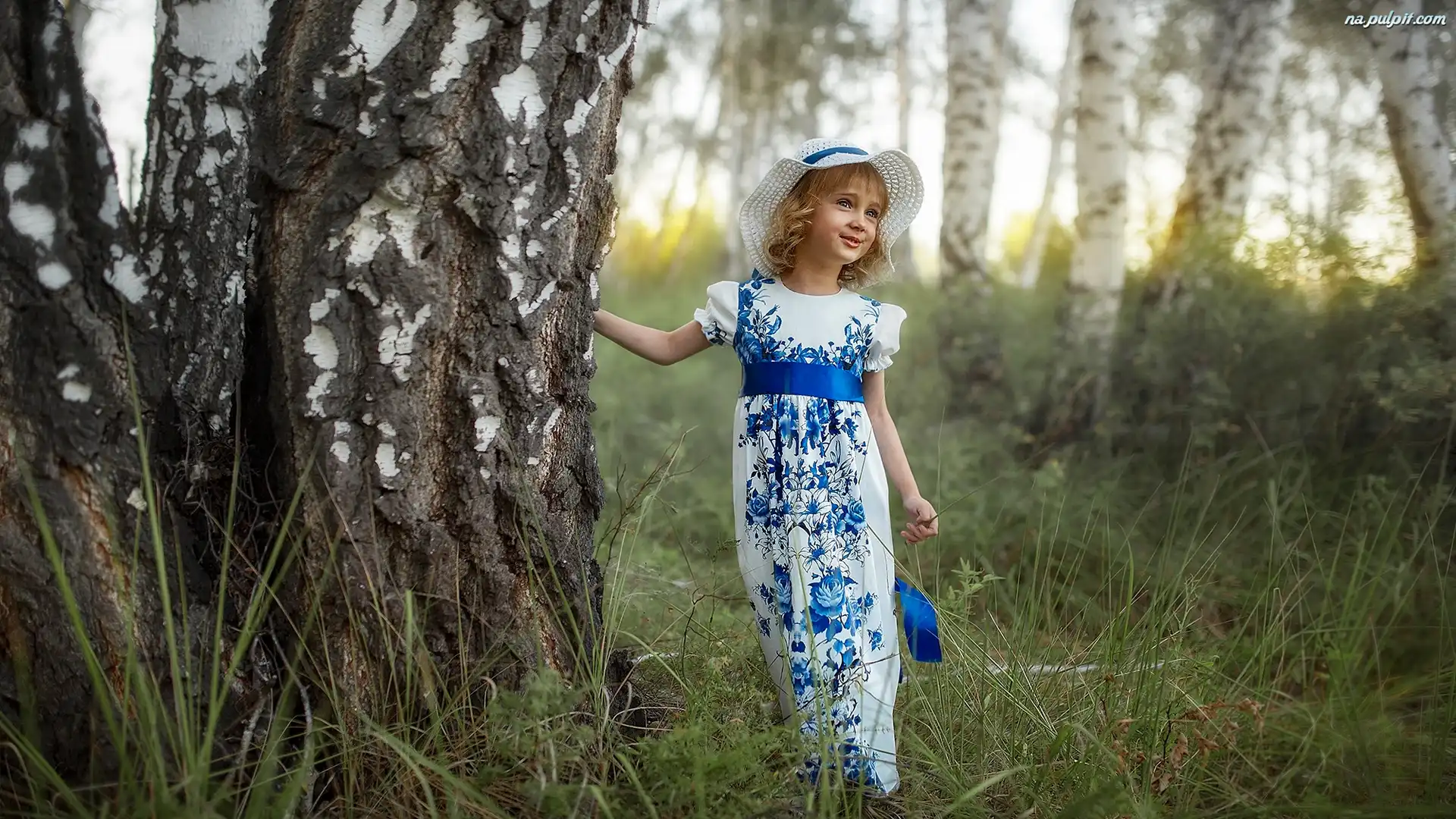 Brzoza, Kapelusz, Dziewczynka, Drzewo