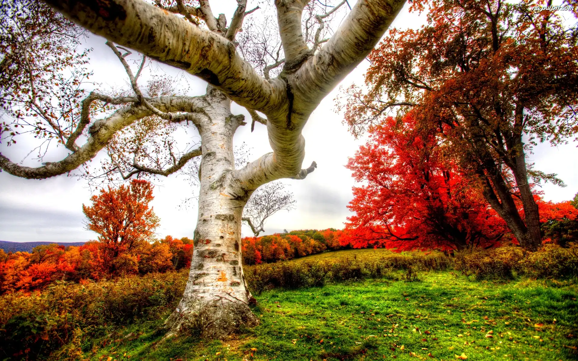 Brzoza, Drzewa, Jesienne, Biała Na Pulpit