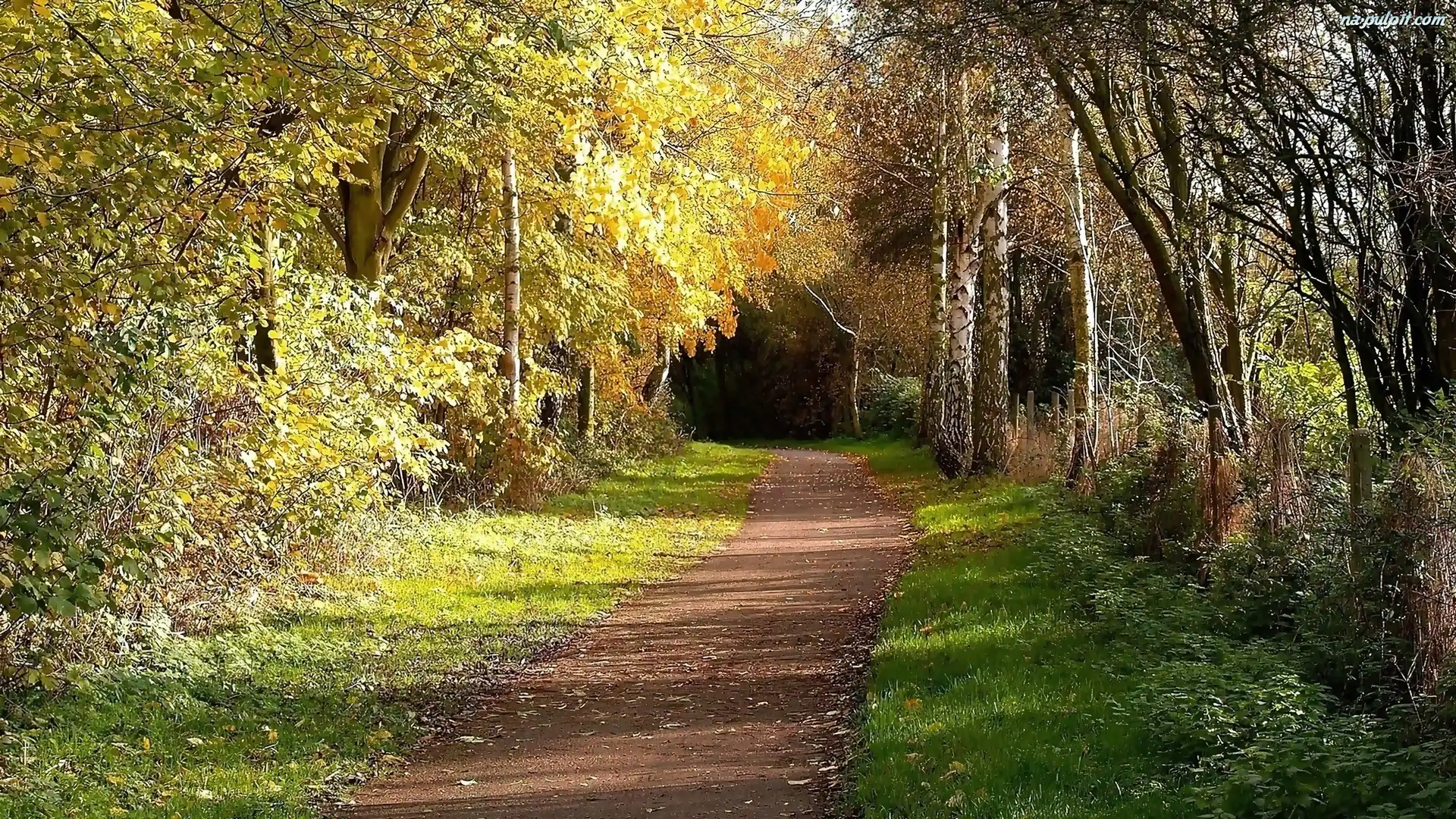 Brzozowy, Przebijające, Światło, Droga, Lasek, Cienie Na Pulpit