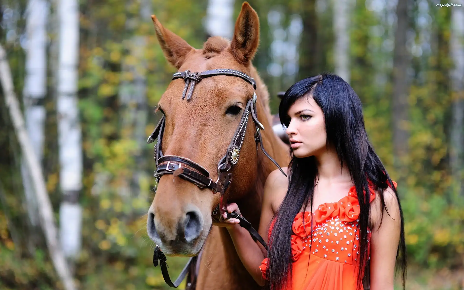 Brzozy, Włosy, Długie, Kobieta, Koń Na Pulpit