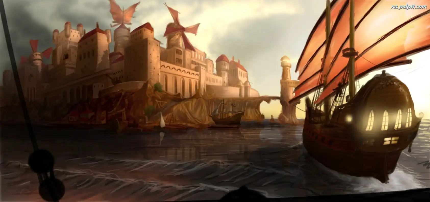 Budowla, Wiatrów, Miasto, Żaglowiec Na Pulpit