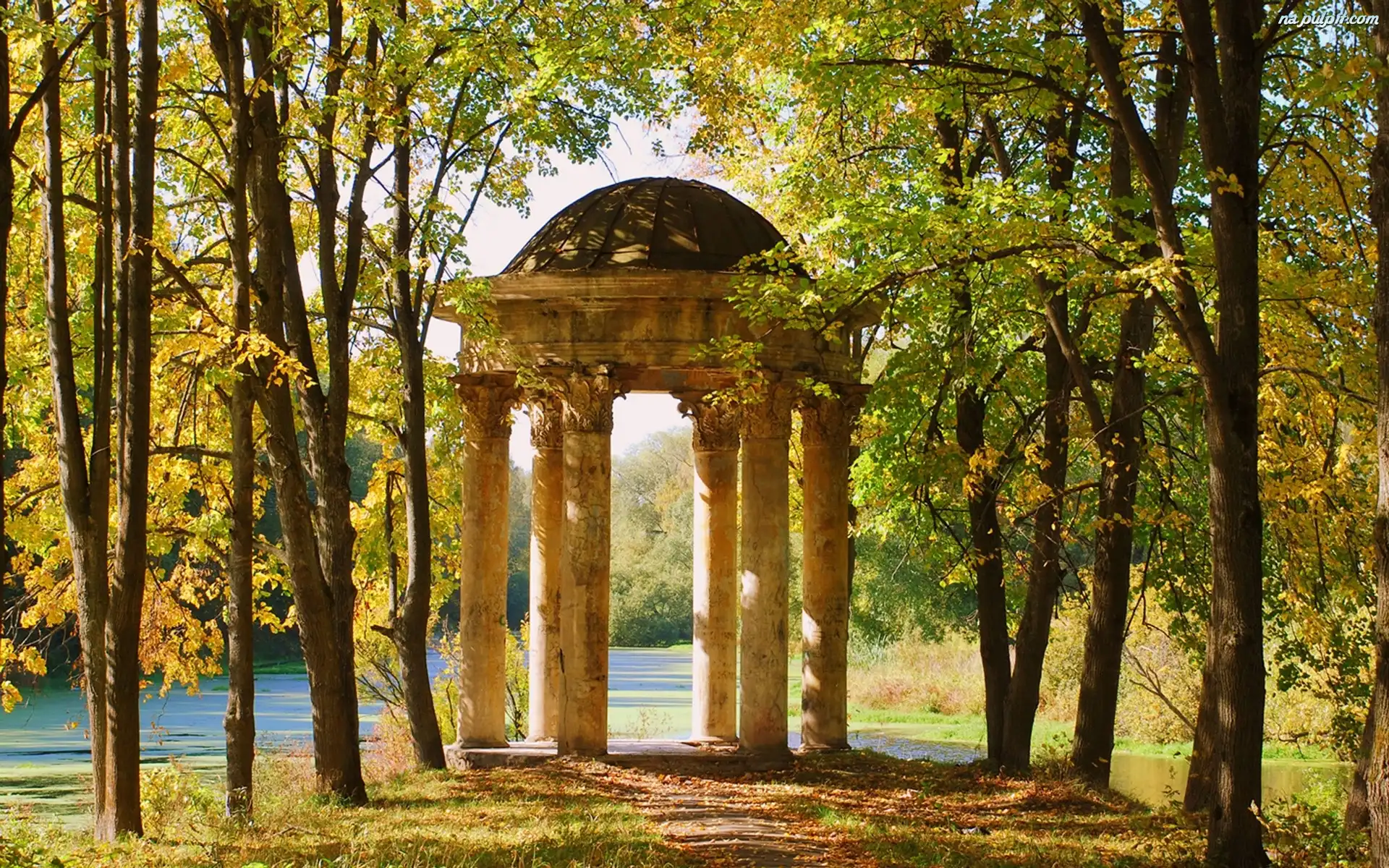 Budowla, Rzeka, Park, Jesień Na Pulpit