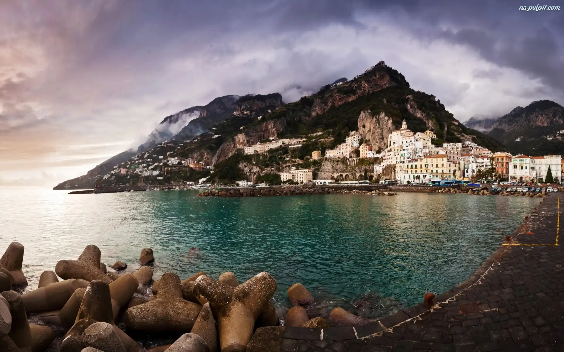 Budynki, Włochy, Amalfi, Wybrzeże Na Pulpit