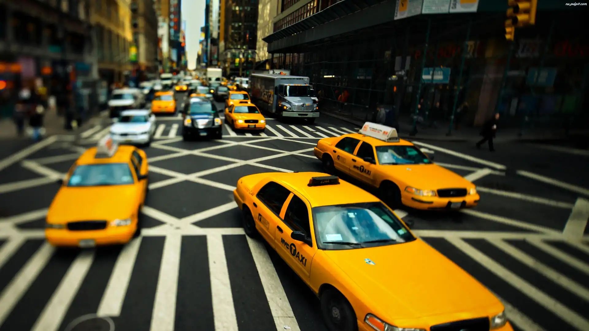 Budynki, Taxi, Nowy Jork, Ulica Na Pulpit