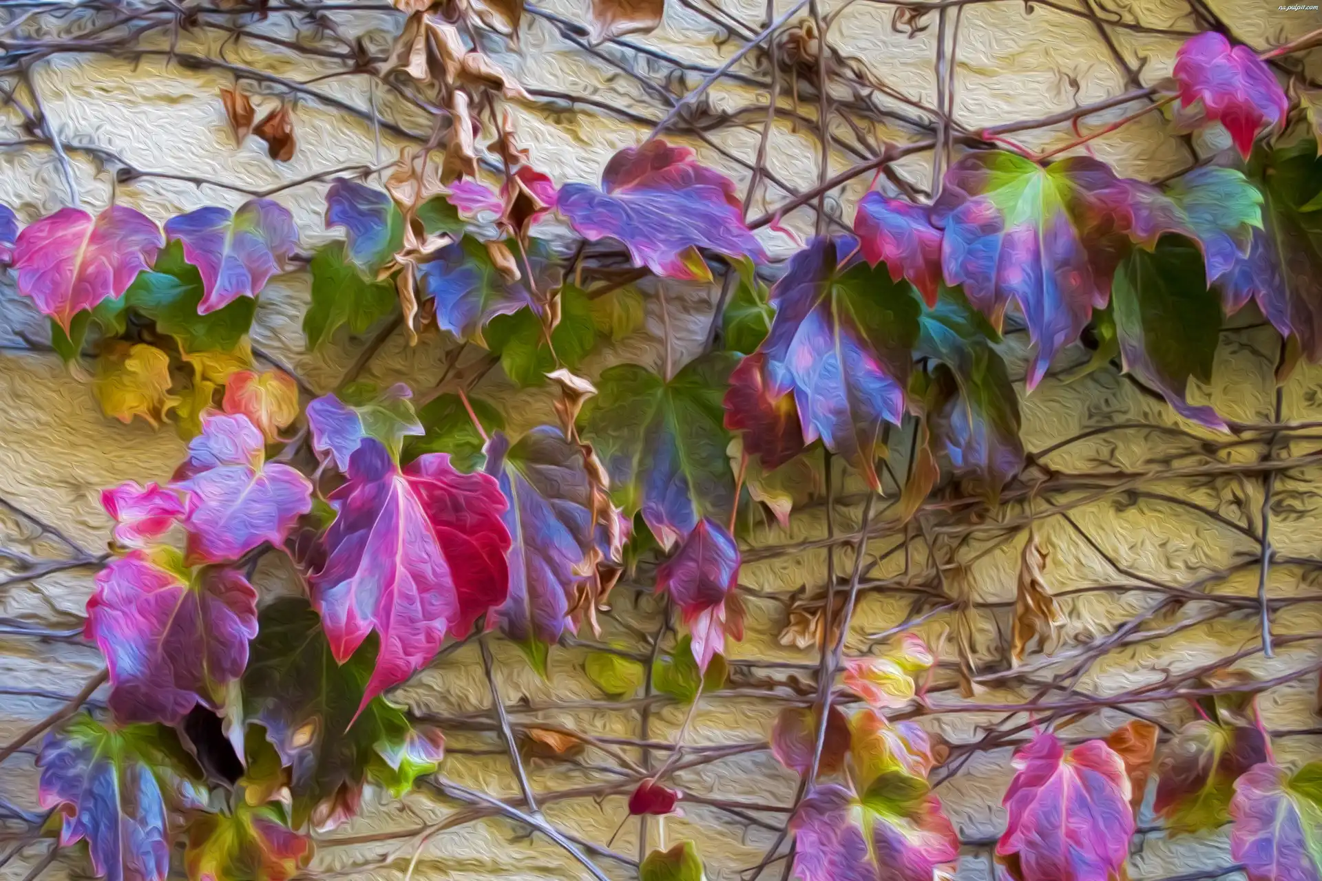 Budynku, Kolorowe, Liście, Pnąca, Fasada, Roślina