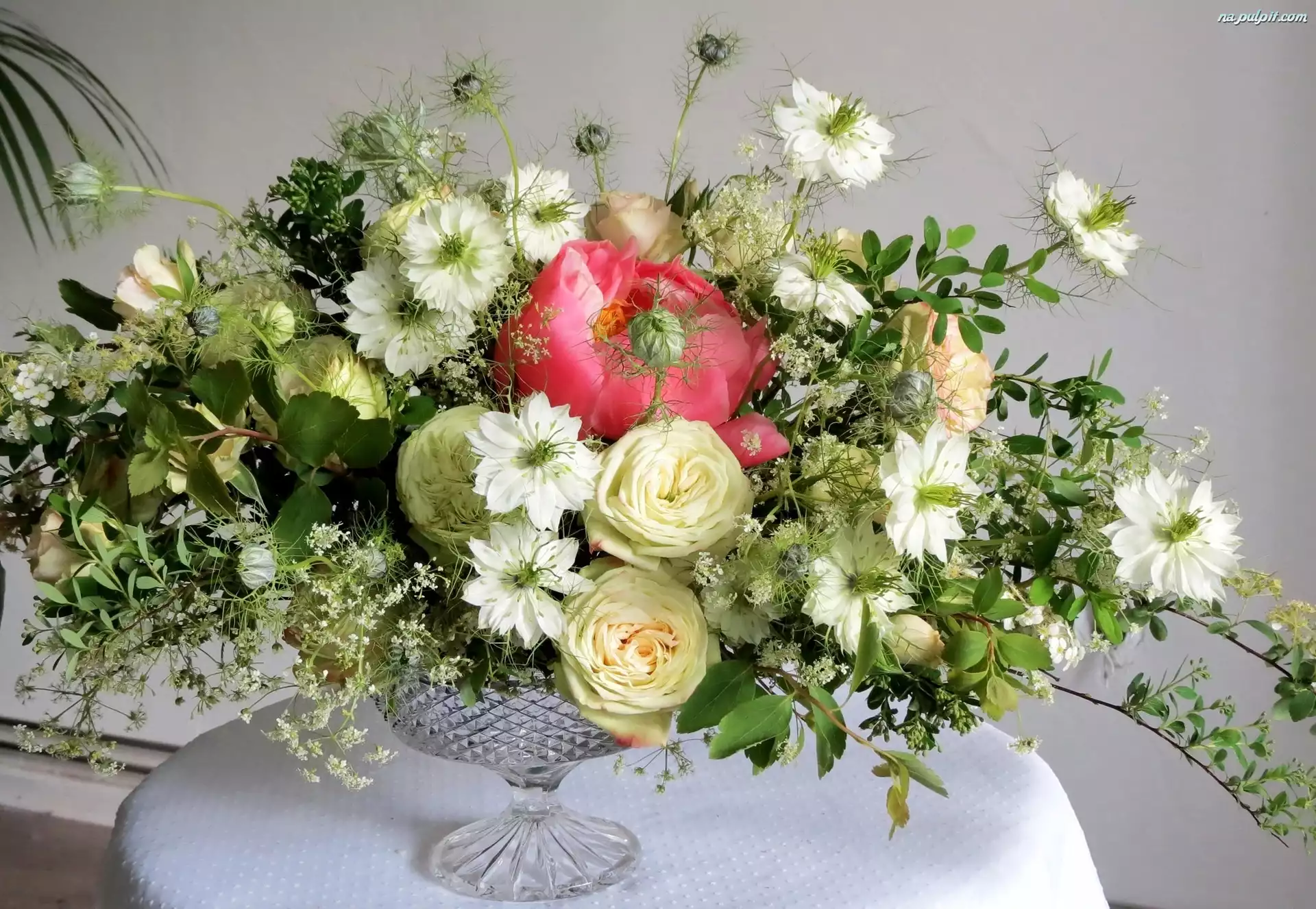 Bukiet, Piwonia, Róże, Białe Kwiaty