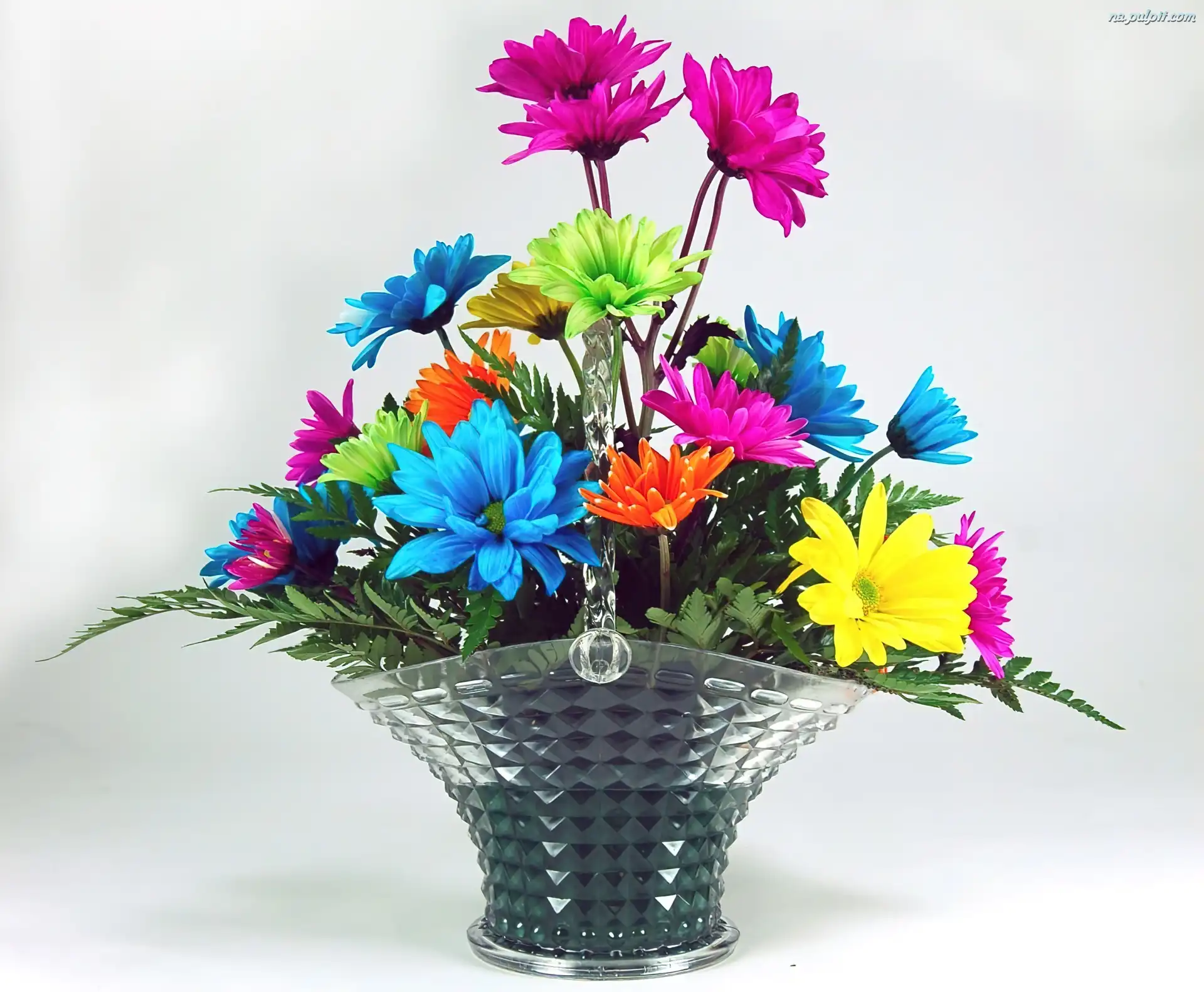 Bukiet, Szklany, Kwiaty, Kolorowe, Koszyk Na Pulpit