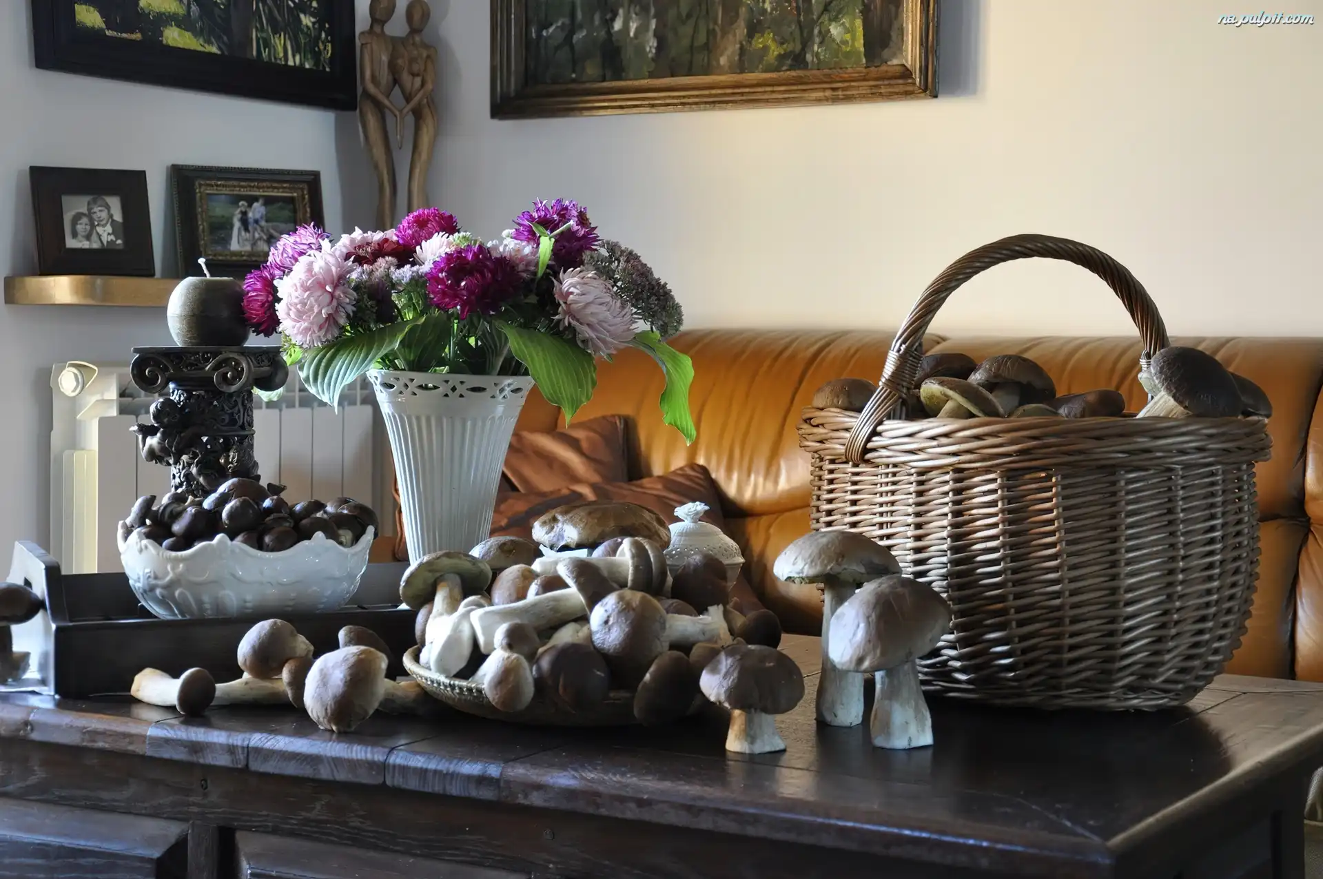 Bukiet Kwiatów, Kosz, Grzyby Na Pulpit