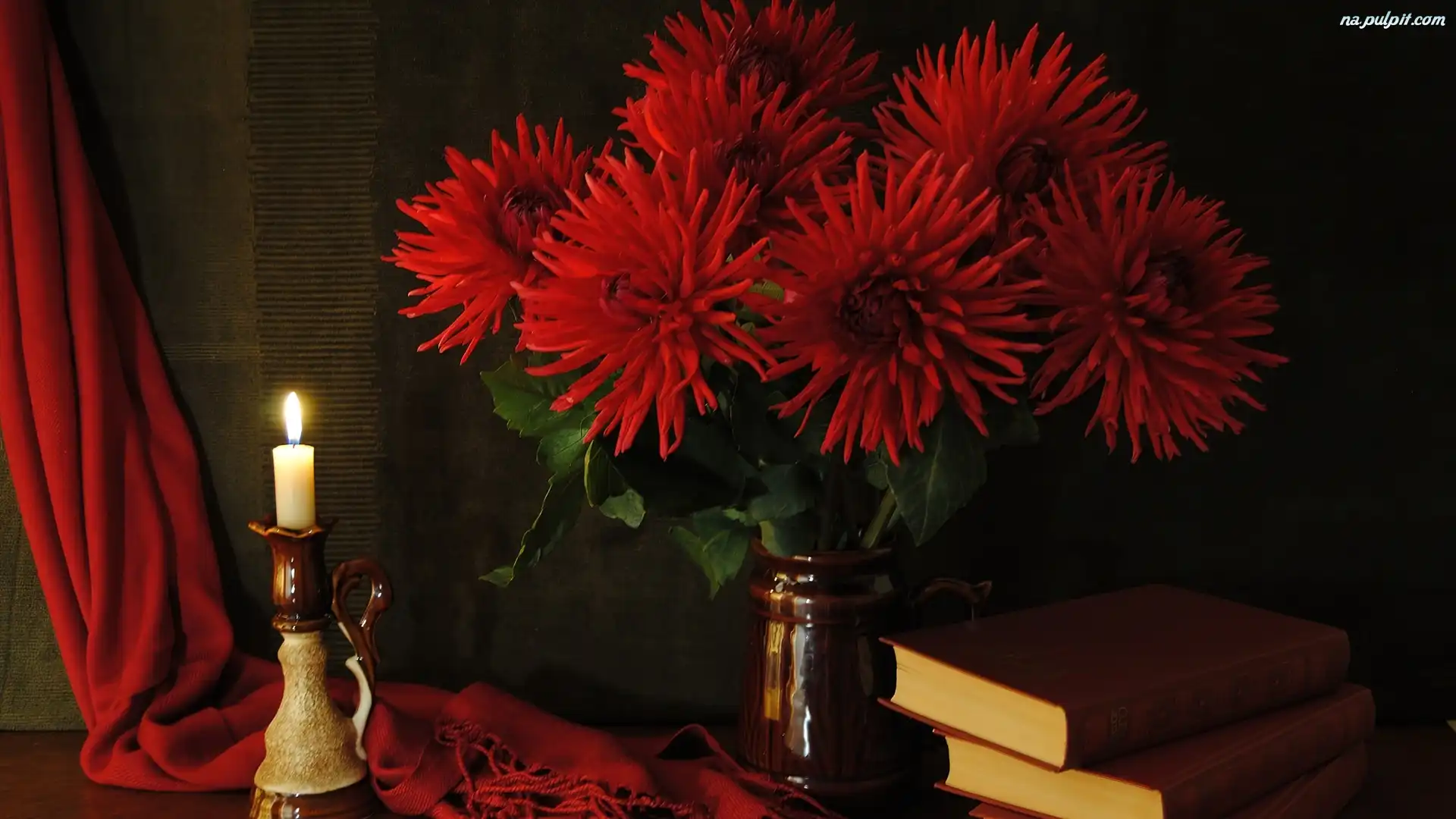 Świeca, Kwiatów, Czerwonych, Bukiet, Książki