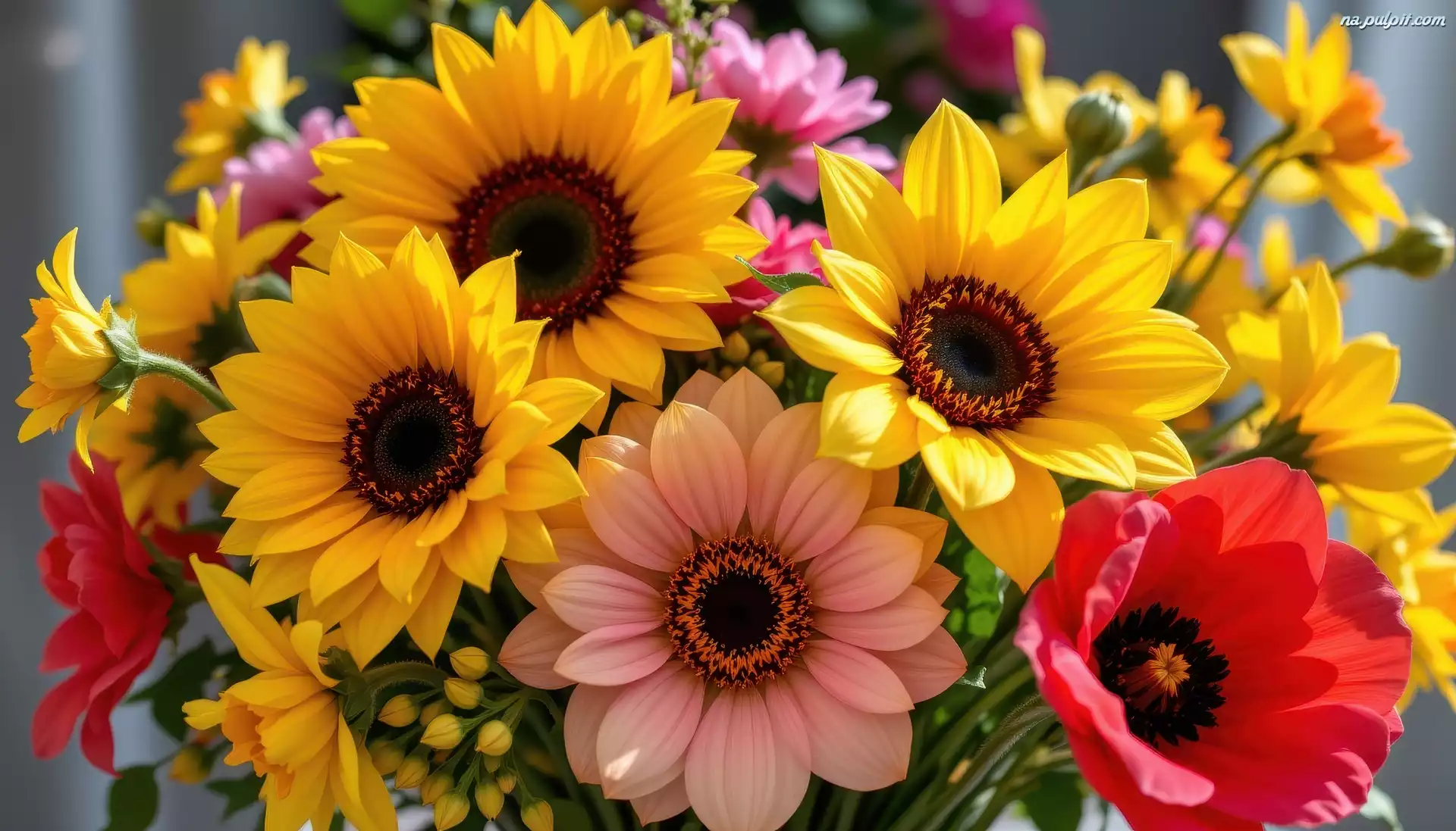 Kwiaty, Kolorowe, AI, Bukiet Na Pulpit