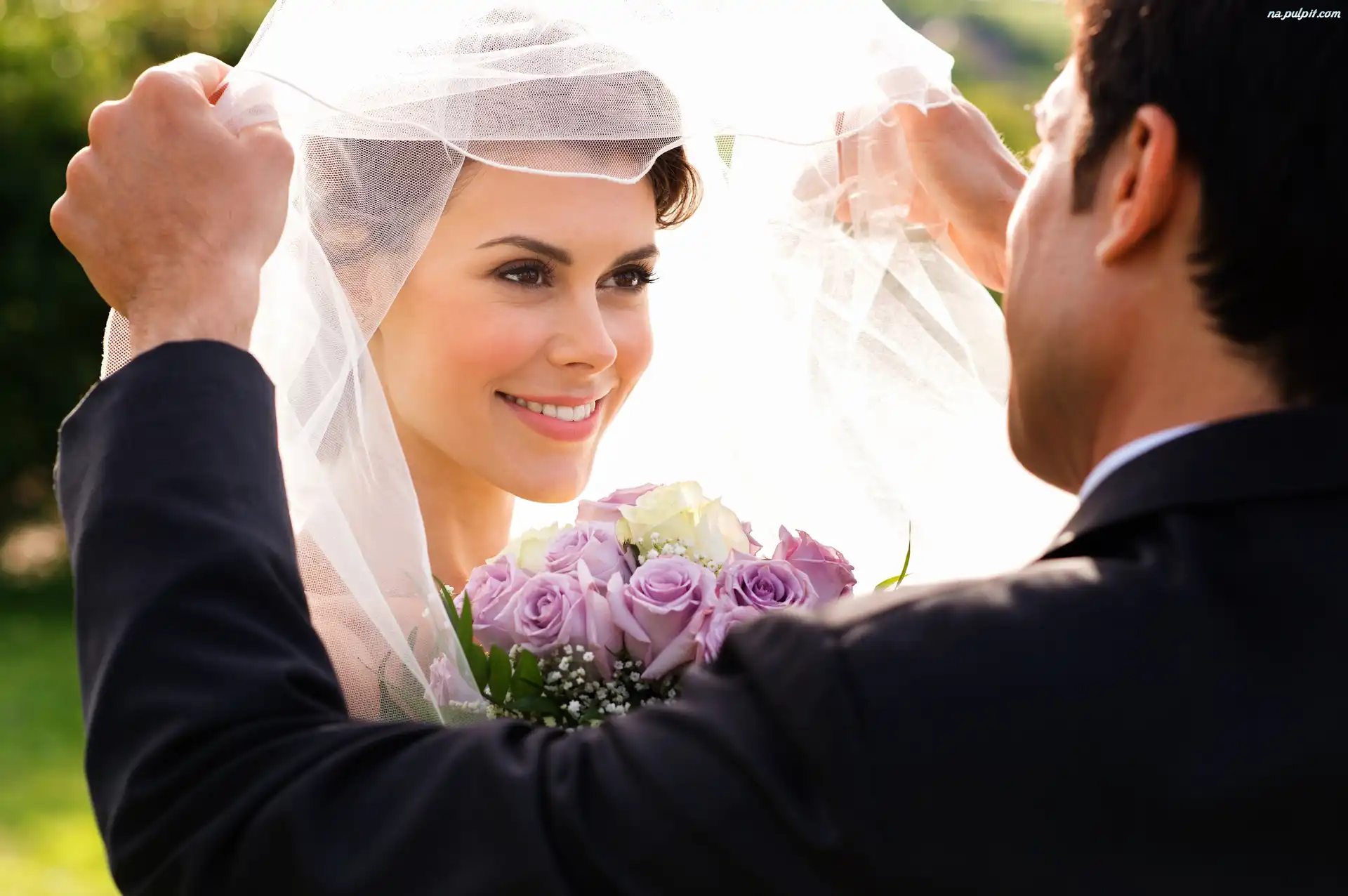 Bukiet, Ślub, Welon, Panna młoda, Woalka Na Pulpit