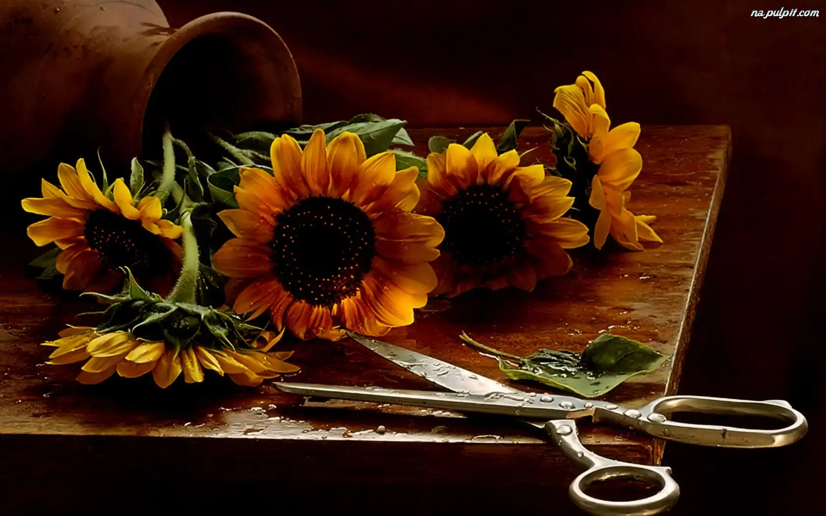 Nożyczki, Bukiet, Słoneczników Na Pulpit