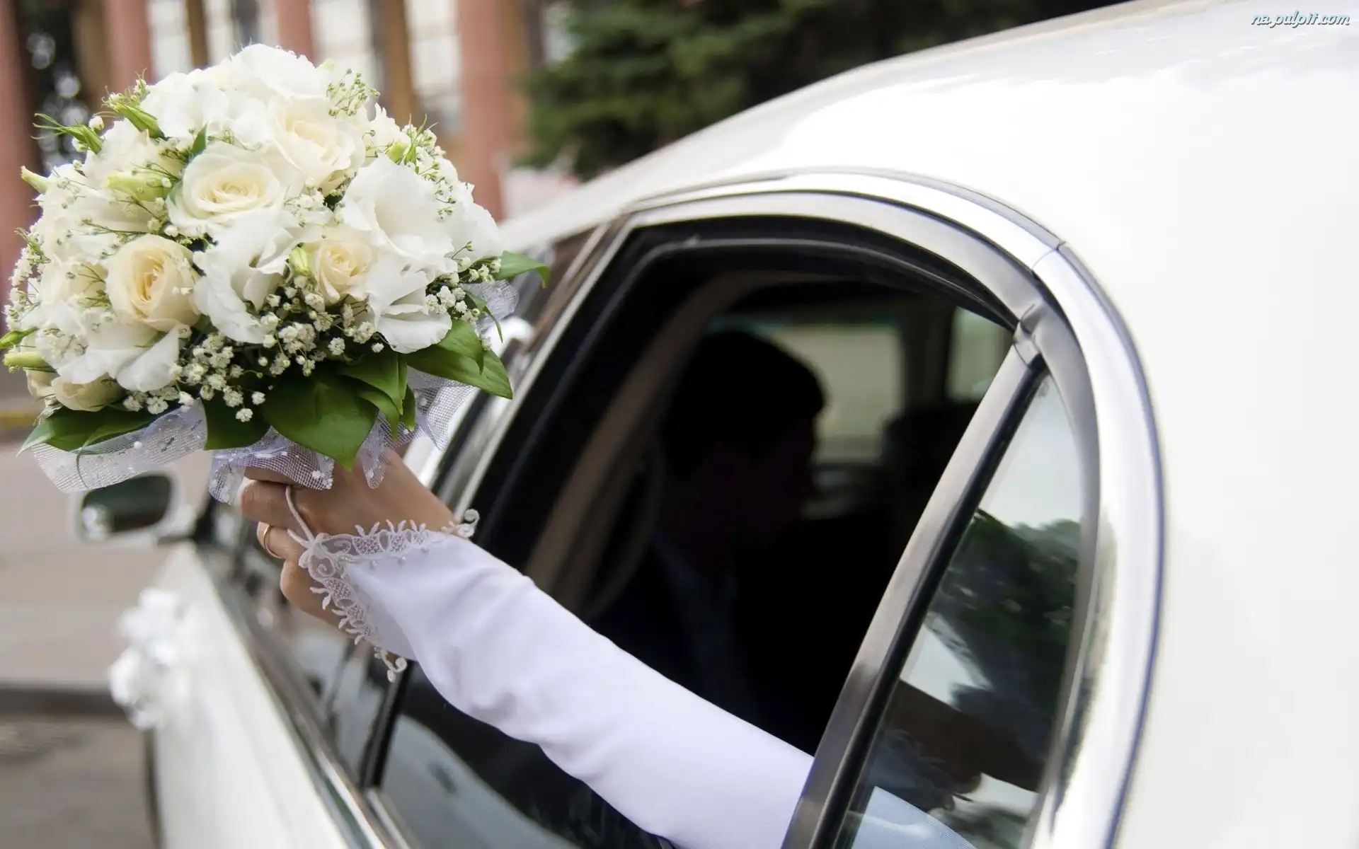 Ślub, Samochód, Bukiet, Ręka Na Pulpit