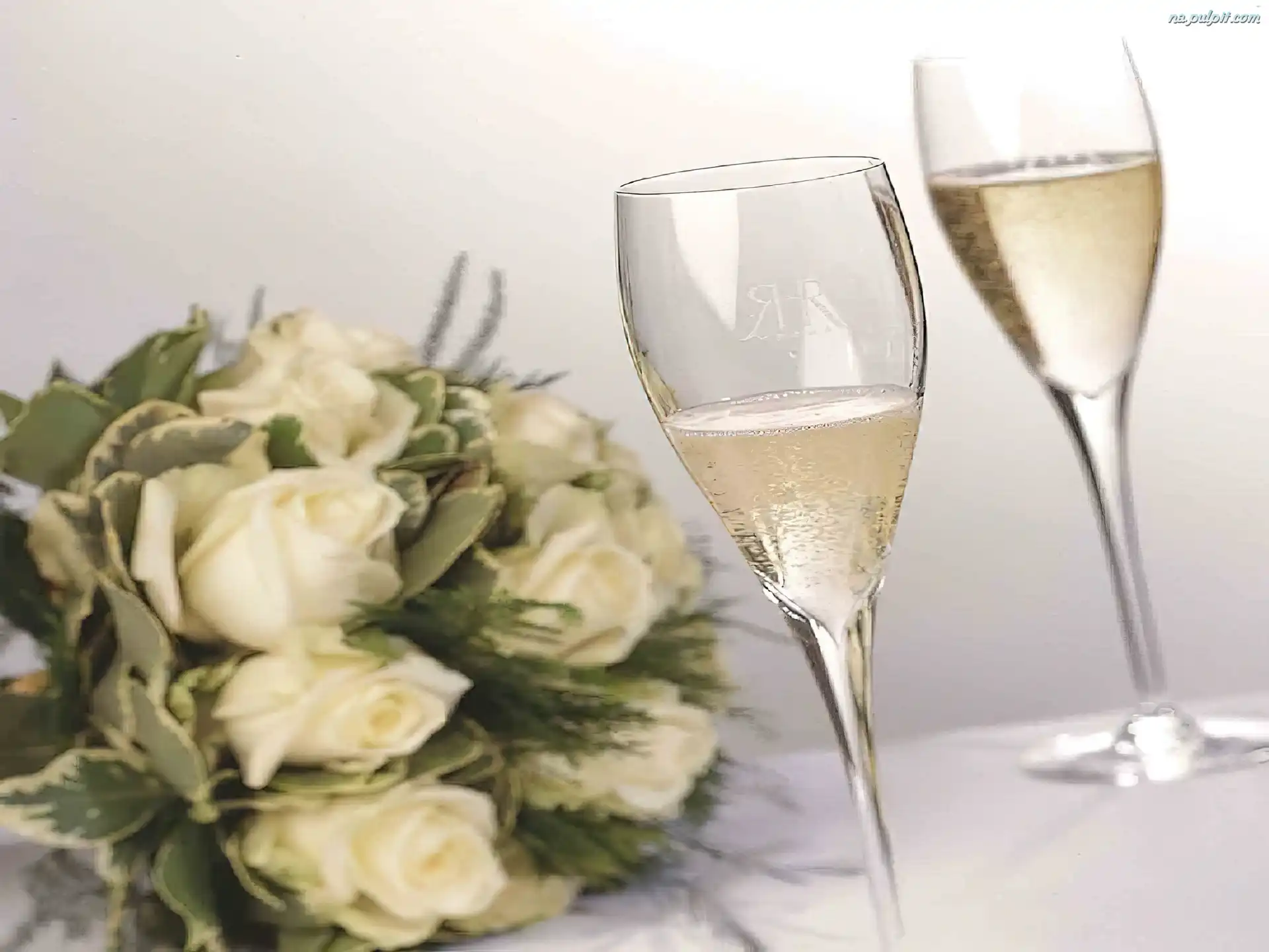 Szampan, bukiet kwiatów Na Pulpit