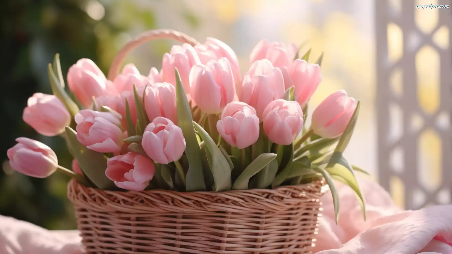 Koszyk, Kwiaty, Tulipany, Bukiet, Różowe, Wiklinowy Na Pulpit