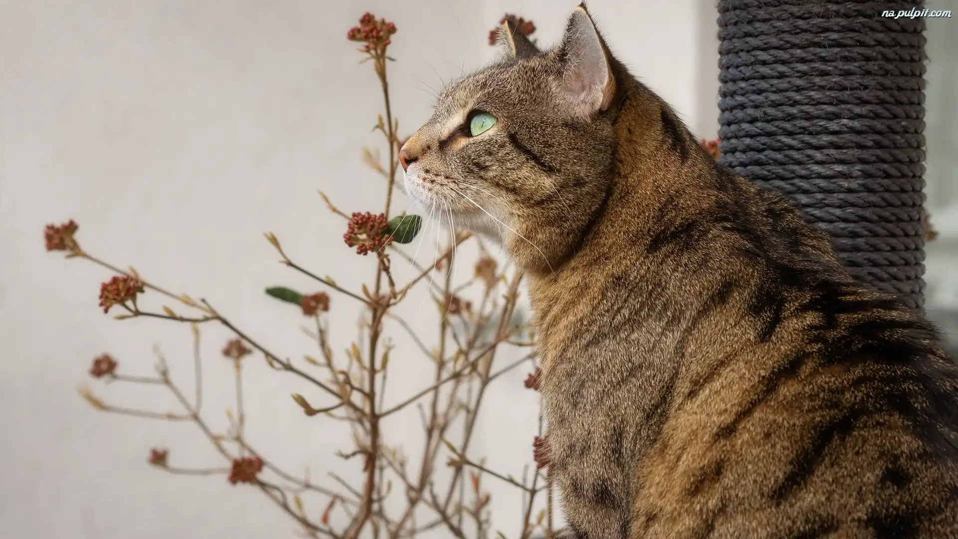 Szaro-bury, Kot, Rośliny, Drapak Na Pulpit