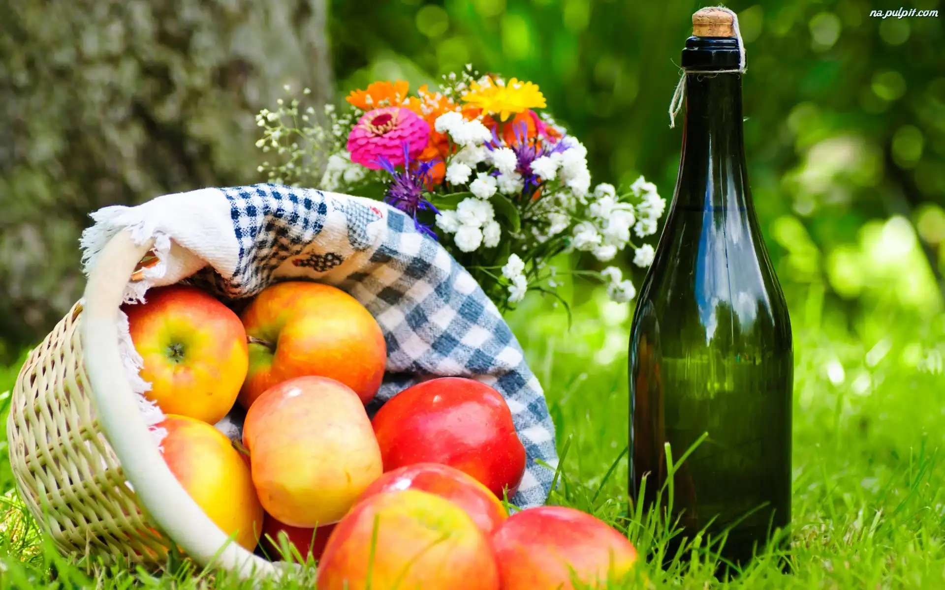 Butelka, Kosz, Jabłka, Bukiet