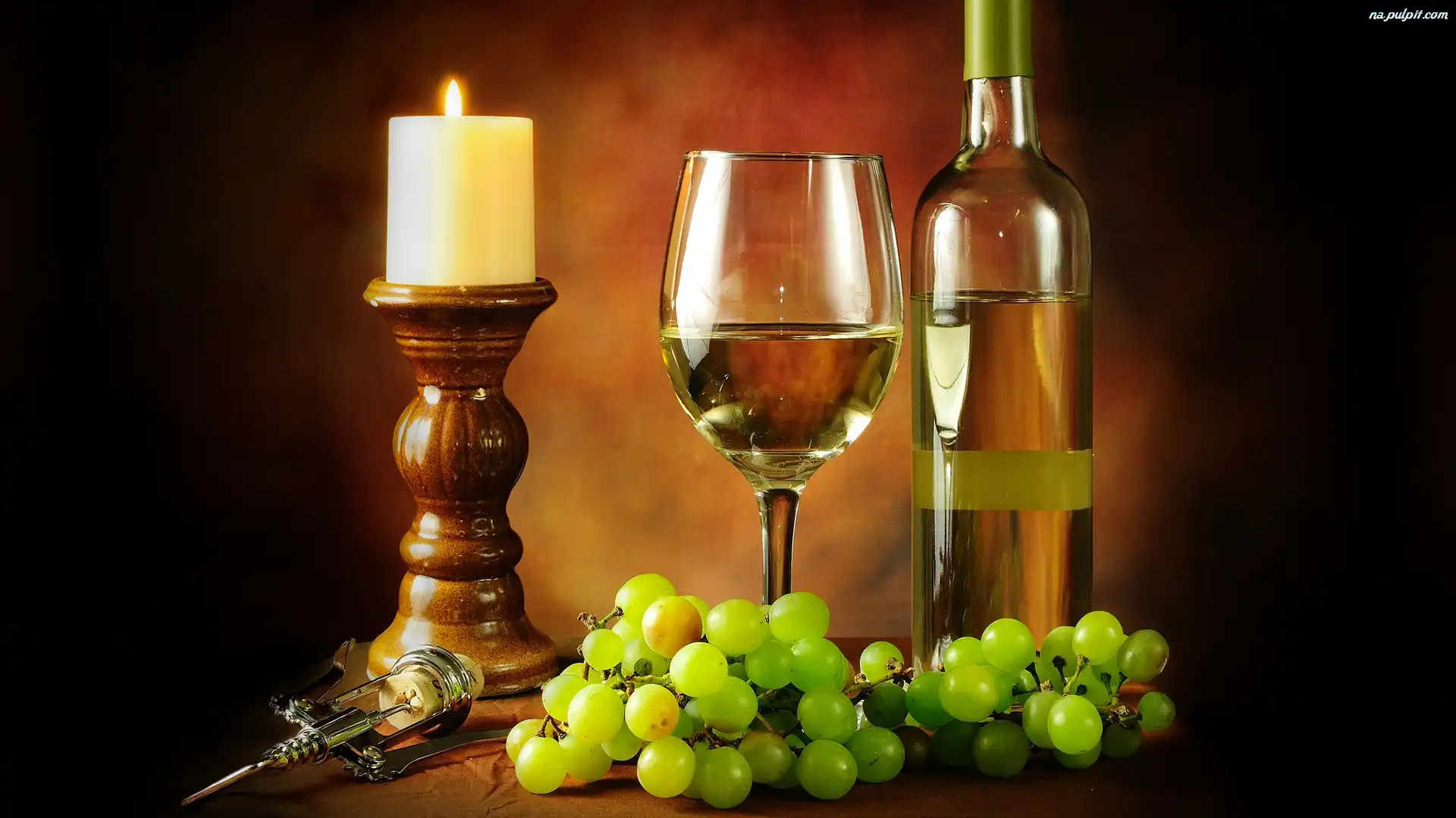 Butelka, Wino, Winogrona, Åšwieca, Kieliszek