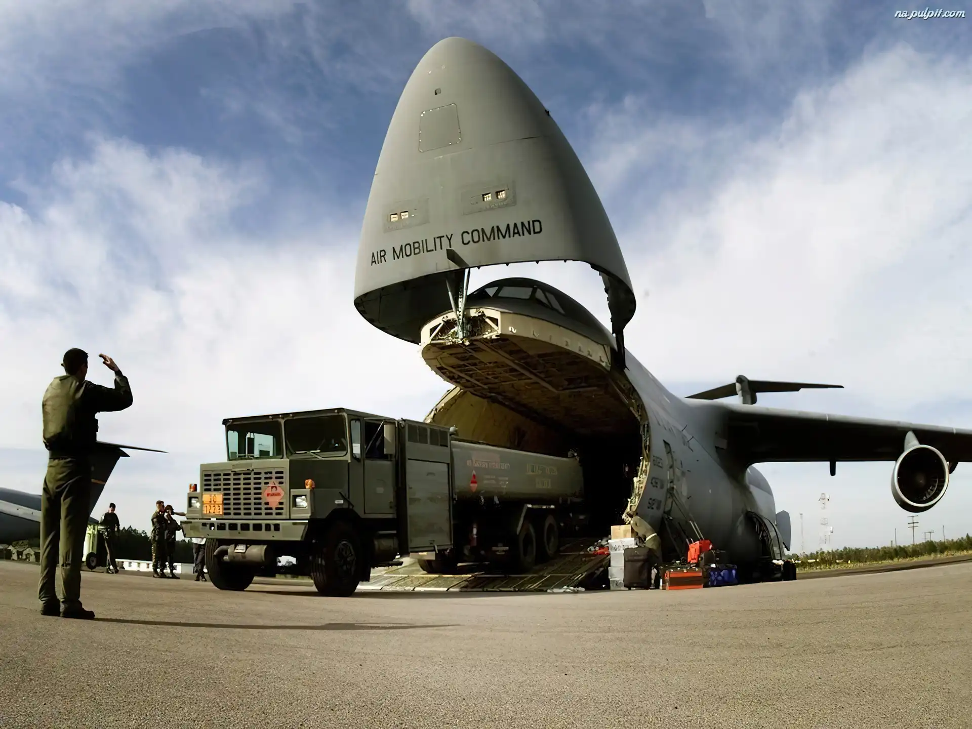 C-5 Galaxy, Transportowy, Samolot, Wyładunek Na Pulpit