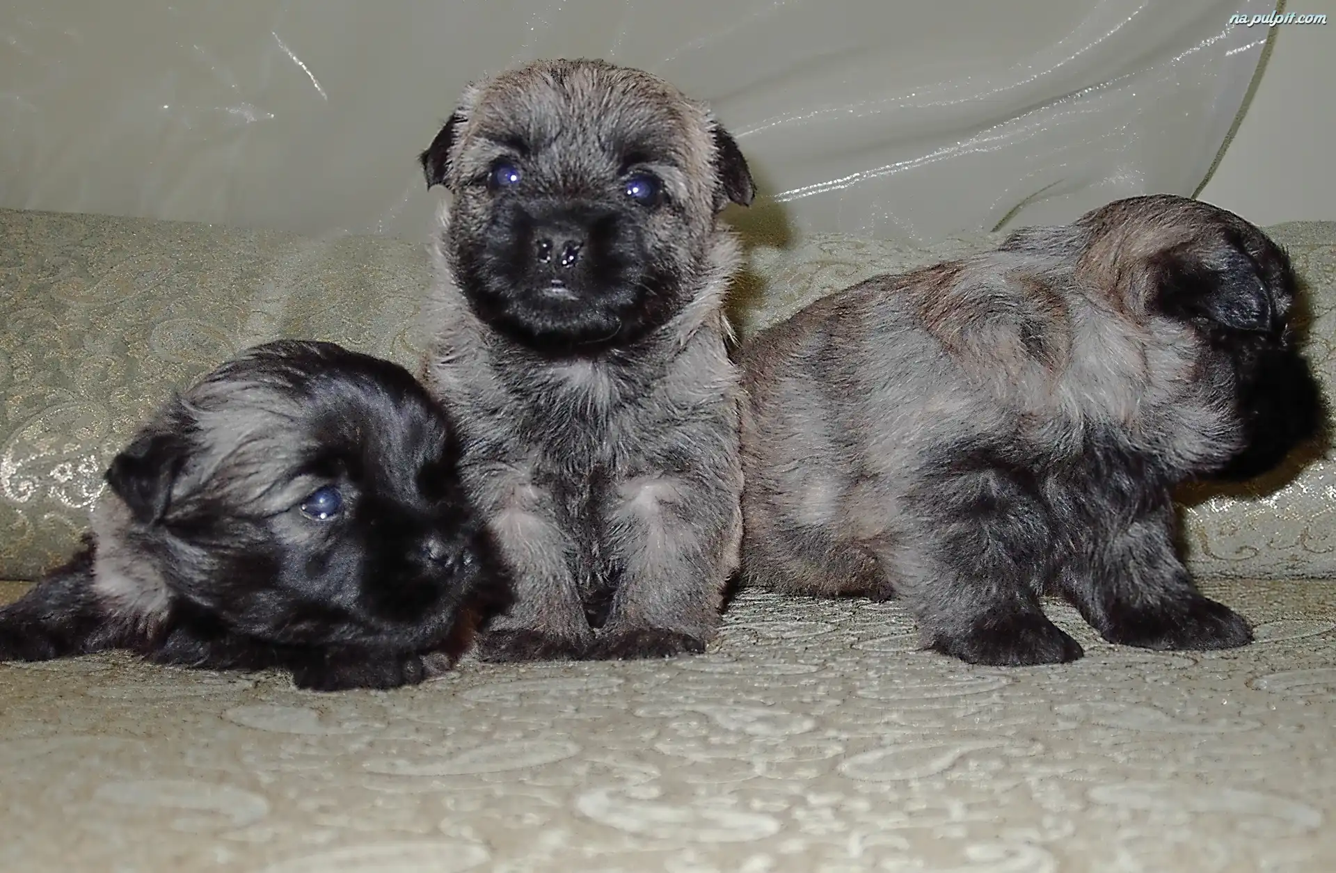 Cairn Terrier, słodkie, trzy, szczeniaki