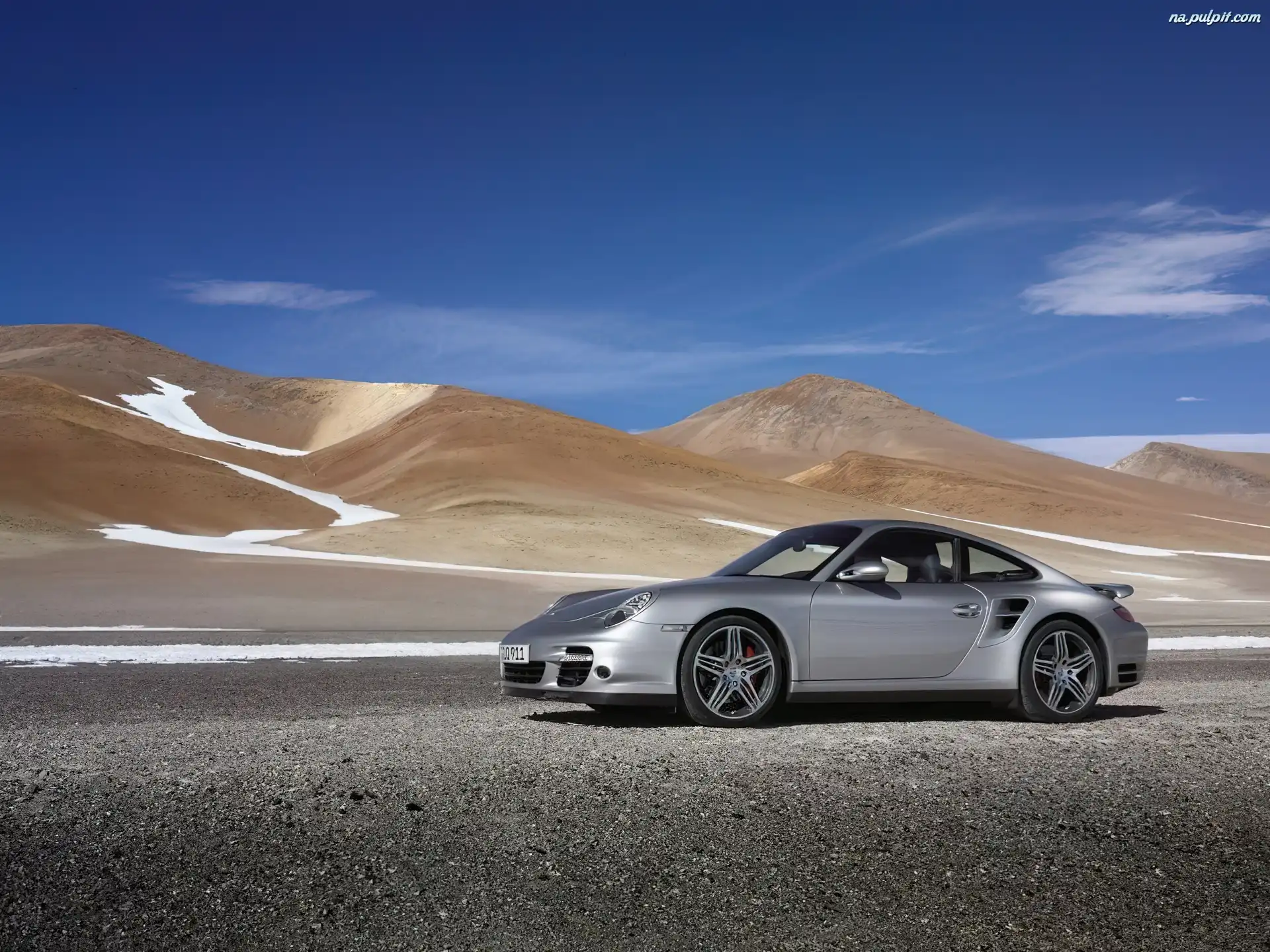 Carrera GT, Tył auta Porsche Carrera GT Carrera GT, Srebrny Carrera GT, Szybki Carrera GT, Przygotowany do zakrętu Carrera GT, Jak lustro Porsche Carrera GT, Niebieski, Biały Carrera GT, Światła jak oczy Carrera GT, Na piasku Carrera GT, Srebrna Carrera GT TUNING, Carrera GT Carrera GT, Cabrio Carrera GT