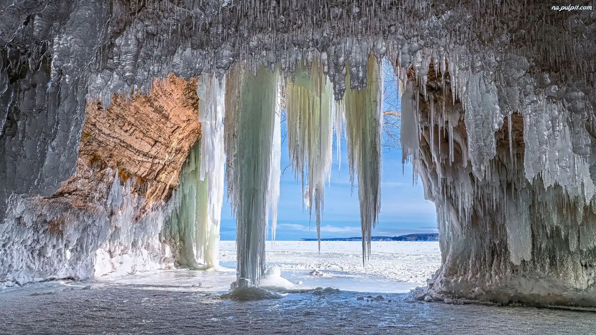 Michigan, Zima, Sople, Grand Island Ice Caves, Jaskinia lodowa, Stany Zjednoczone Na Pulpit