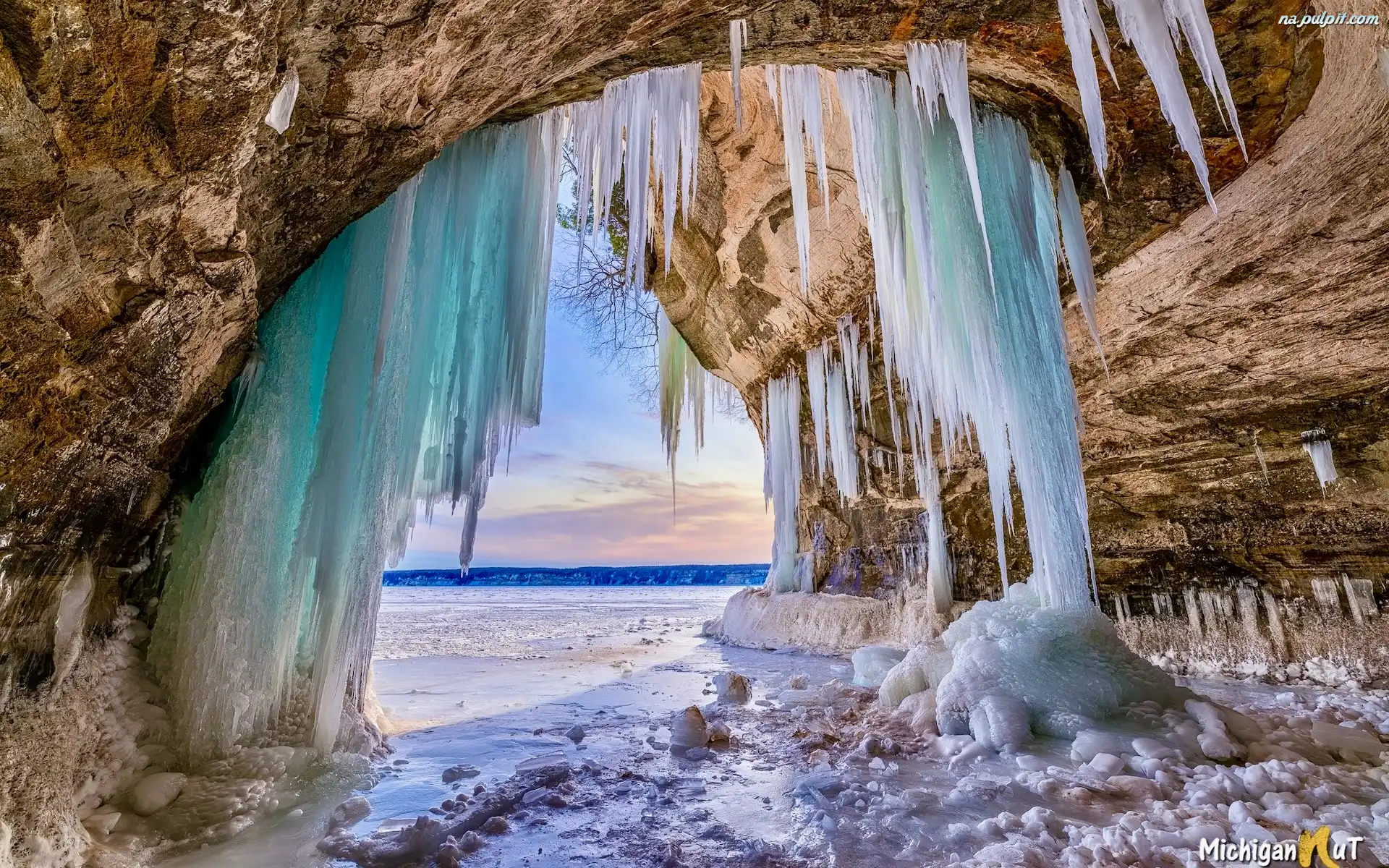 Sople, Stany Zjednoczone, Grand Island Ice Caves, Jaskinia lodowa, Michigan, Zima Na Pulpit