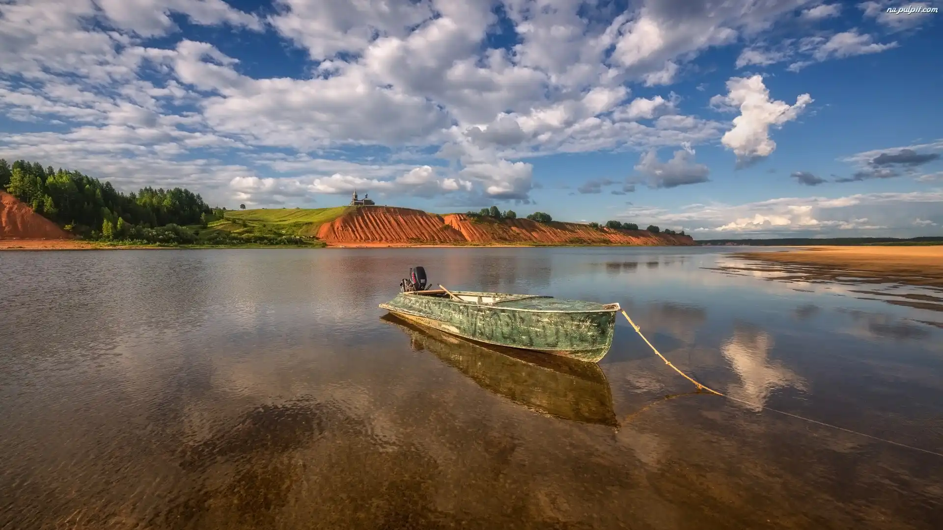 Jezioro, Łódka, Drzewa, Cerkiew Na Pulpit