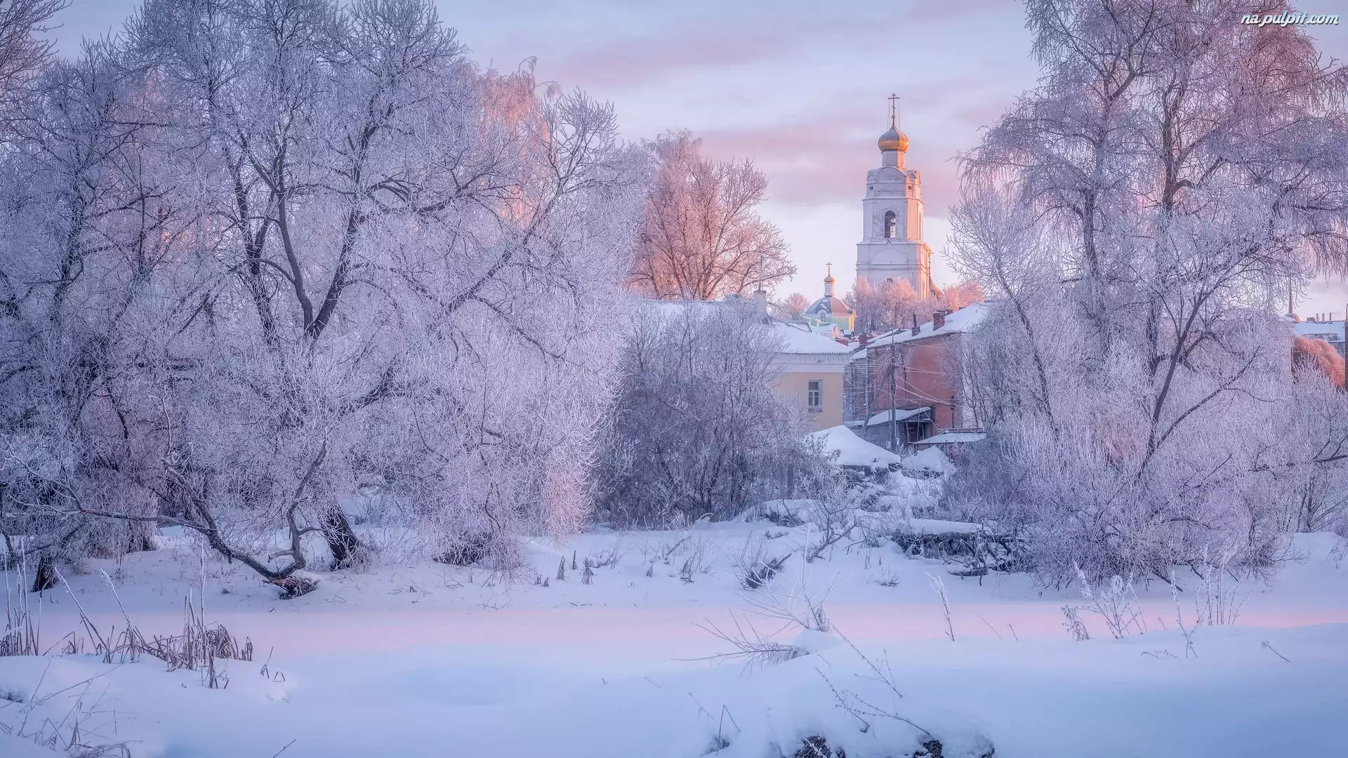 Rosja, Cerkiew, Obwód smoleński, Drzewa, Ośnieżone, Zima, Wiaźma Na Pulpit