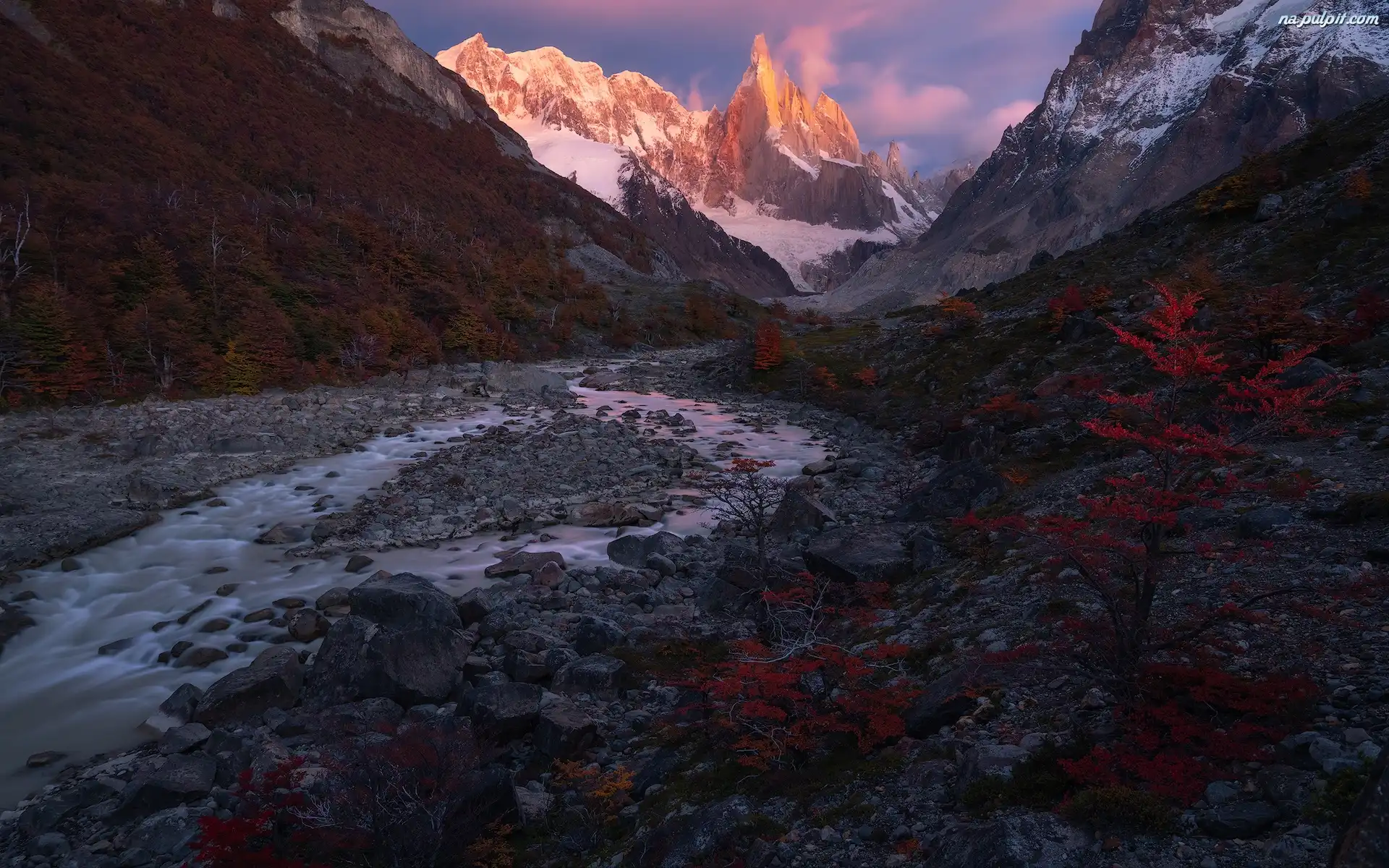 Rzeka, Argentyna, Góry, Cerro Torre, Patagonia, Roślinność Na Pulpit