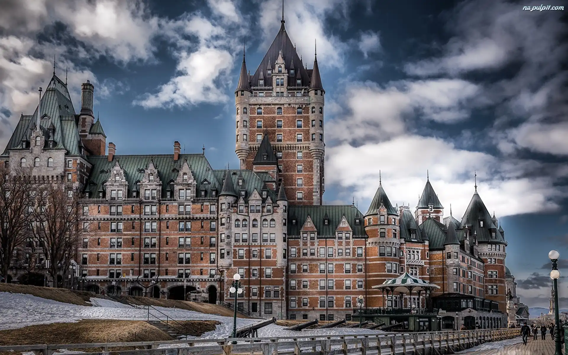 Chateau Frontenac, Zamek, Zima, Kanada, Chmury, Niebo, Quebec, Hotel Na Pulpit