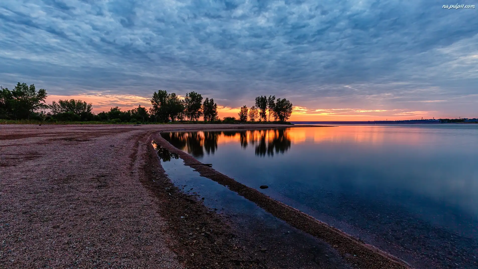 Jezioro, Park stanowy, Chatfield Lake, Stany Zjednoczone, Chmury, Drzewa, Kolorado, Chatfield State Park Na Pulpit |