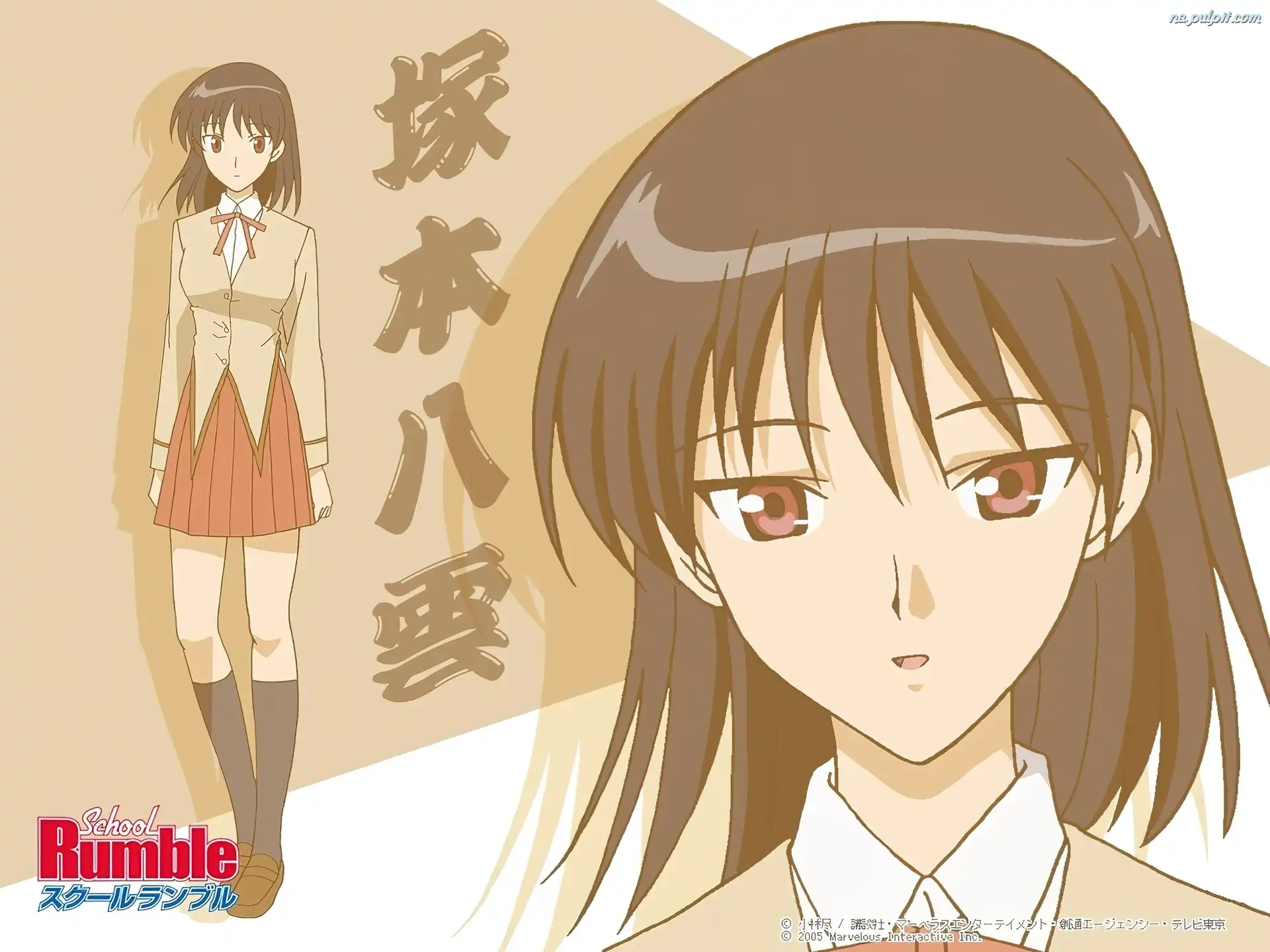 chińskie znaki, School Rumble, ciemne włosy Na Pulpit