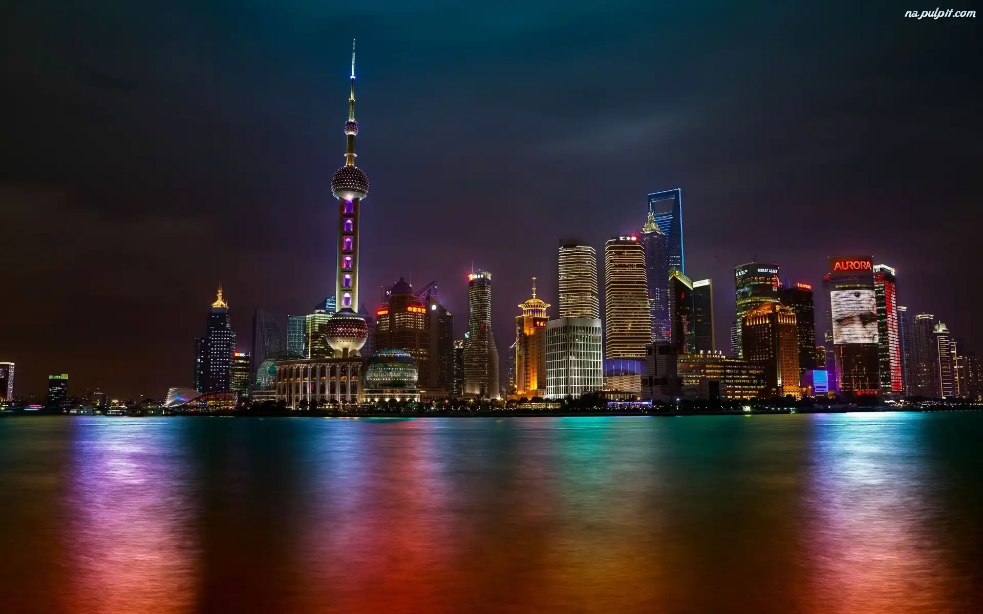 Chiny, Noc, Miasto, Szanghaj Na Pulpit