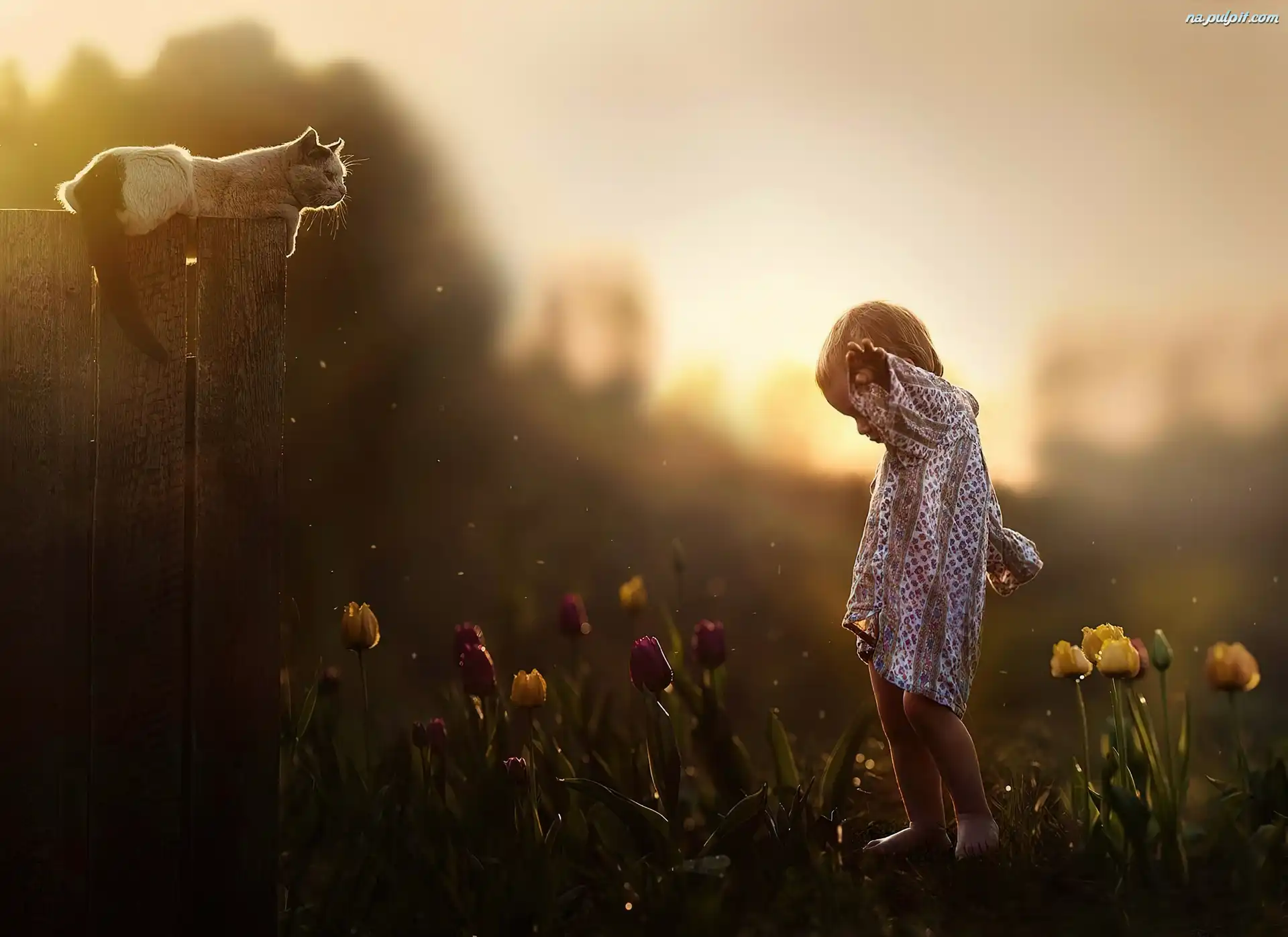 Tulipany, Chłopiec, Kot