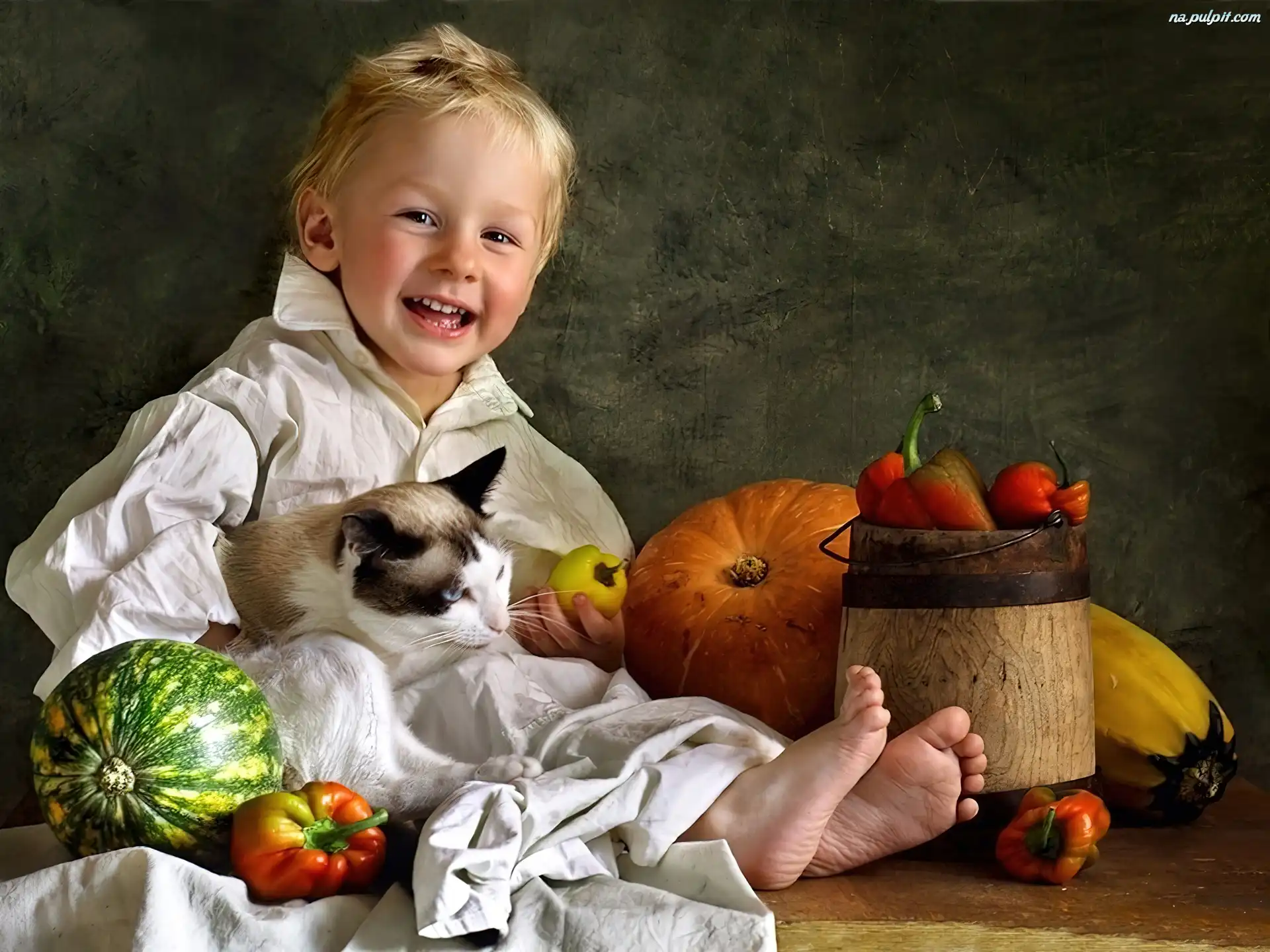 Warzywa, Chłopiec, Kot