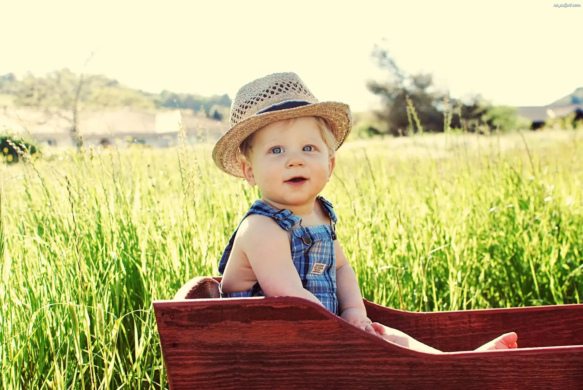Łąka, Wózek, Chłopiec, Kapelusz Na Pulpit