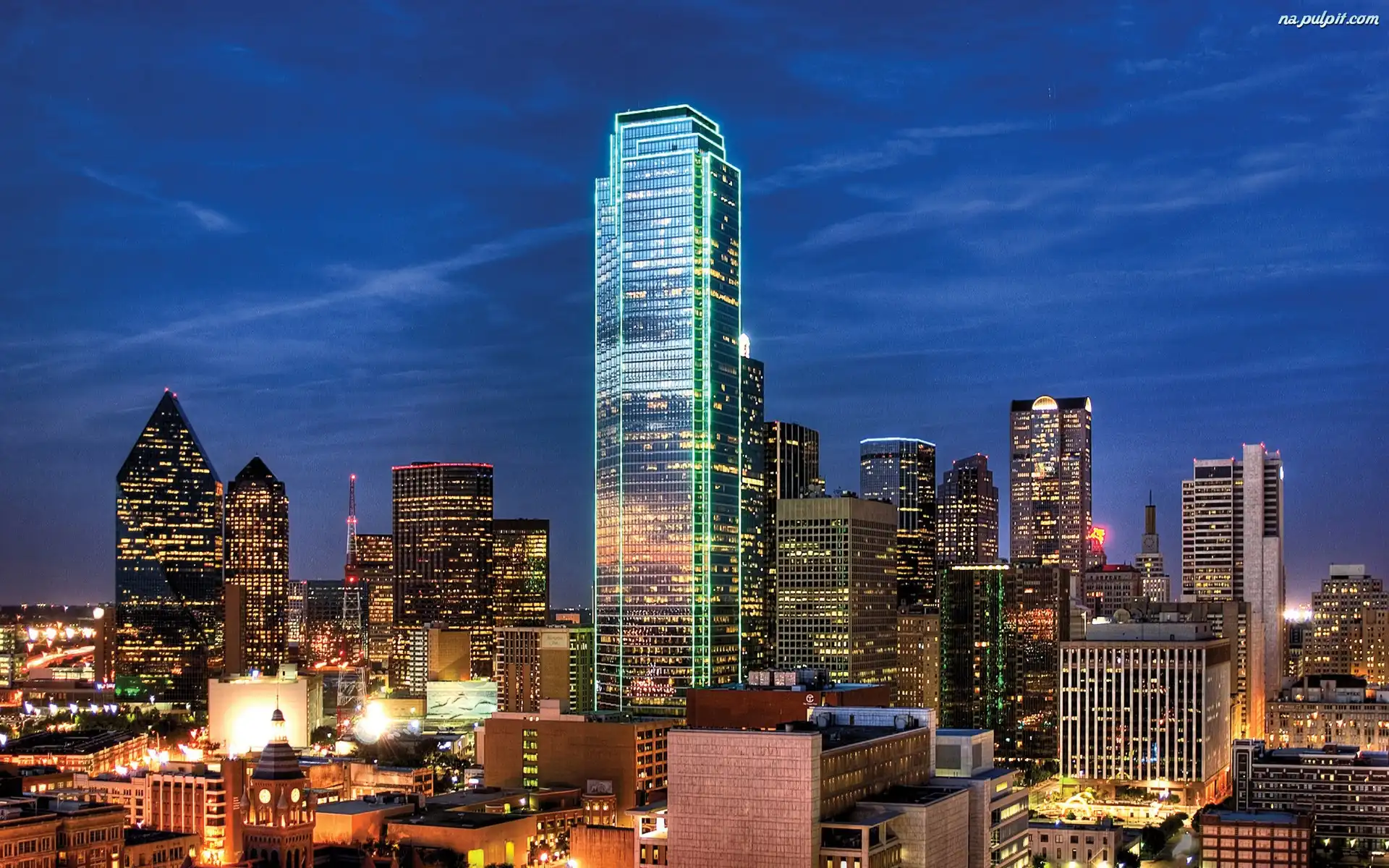 Miasta, Chmur, Panorama, Dallas, Noc, Drapacze, Texas Na Pulpit